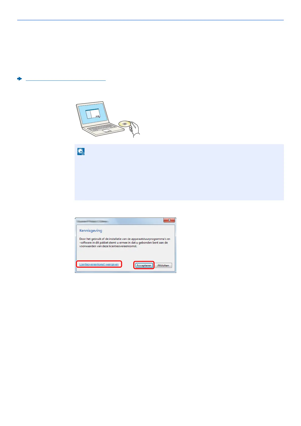• De installatie op Windows moet worden uitgevoerd door een gebruiker is aangemeld met