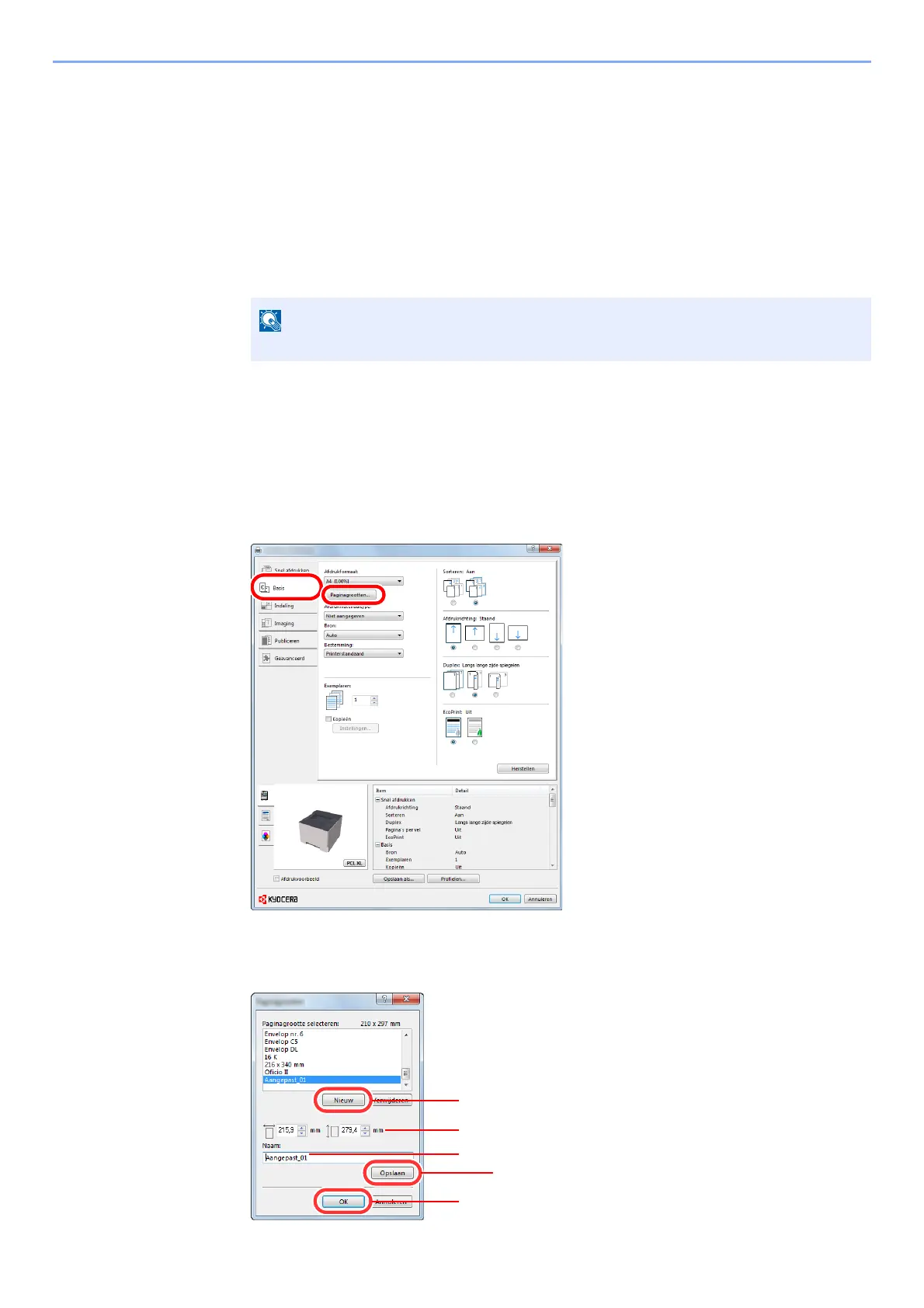 Als u een papierformaat plaatst dat niet is opgenomen in de afdrukformaten van het apparaat, registreer dan het
