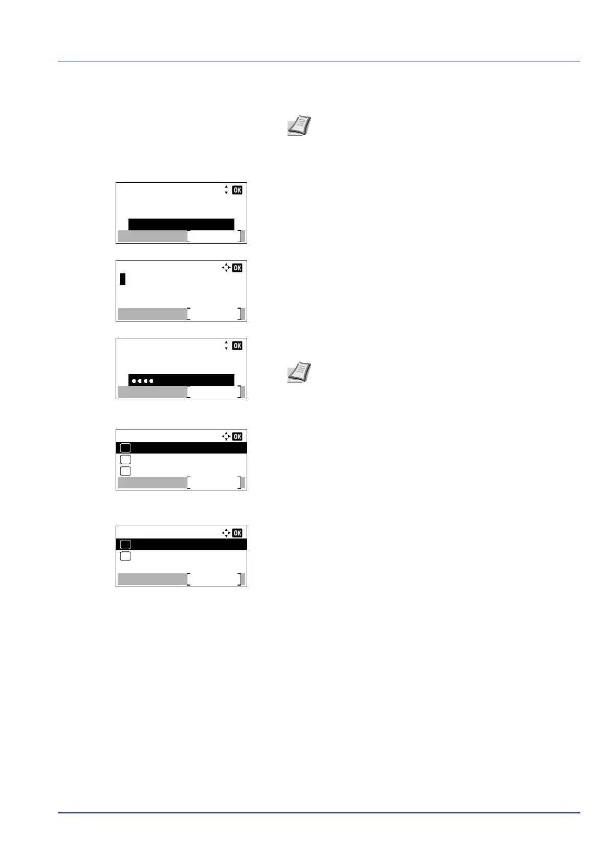 9 Pressing [Login] ([Right Select]). If the entered Login User Name