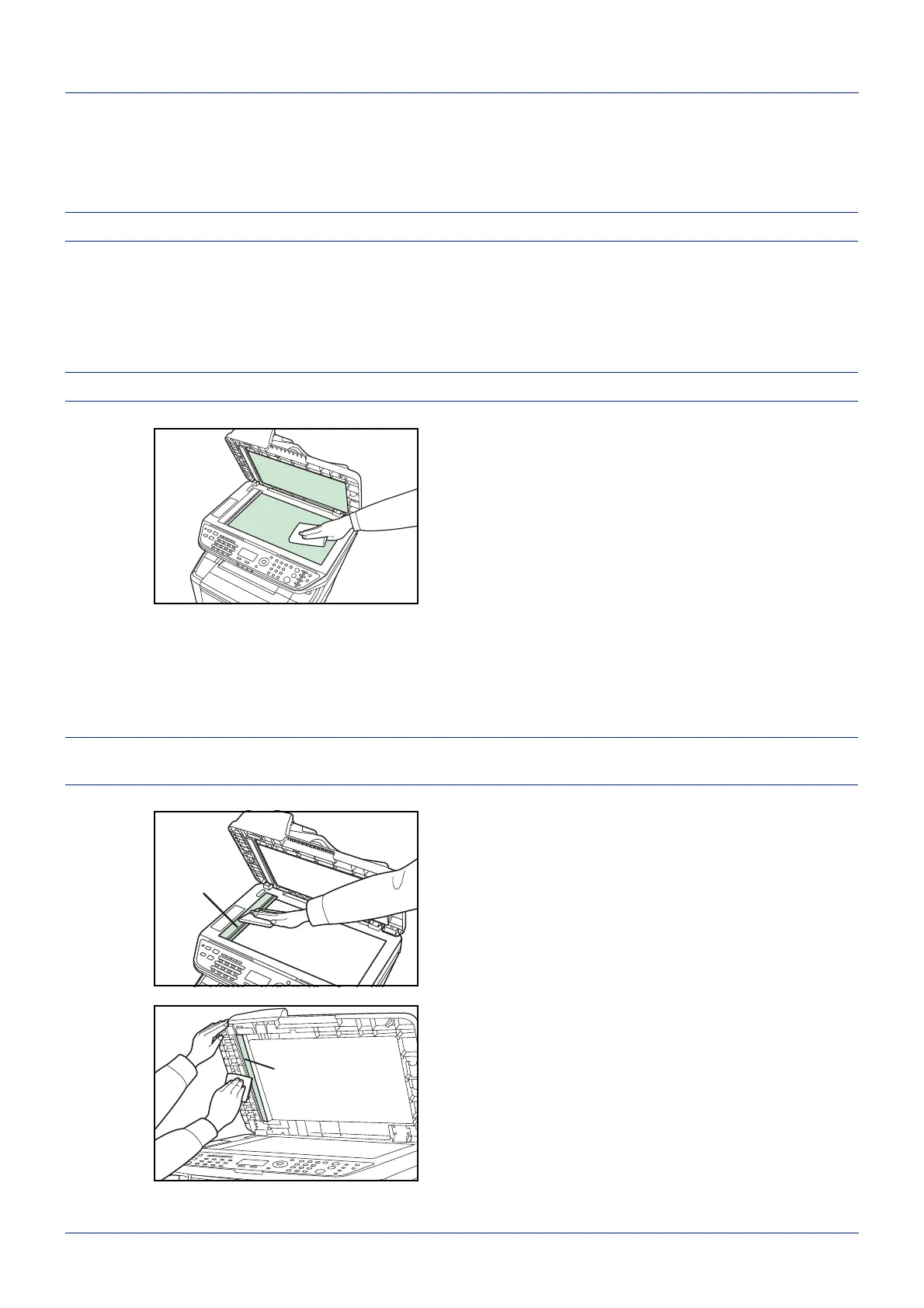 Veeg de binnenkant van de documenttoevoer en de glasplaat schoon met een zachte doek bevochtigd met alcohol