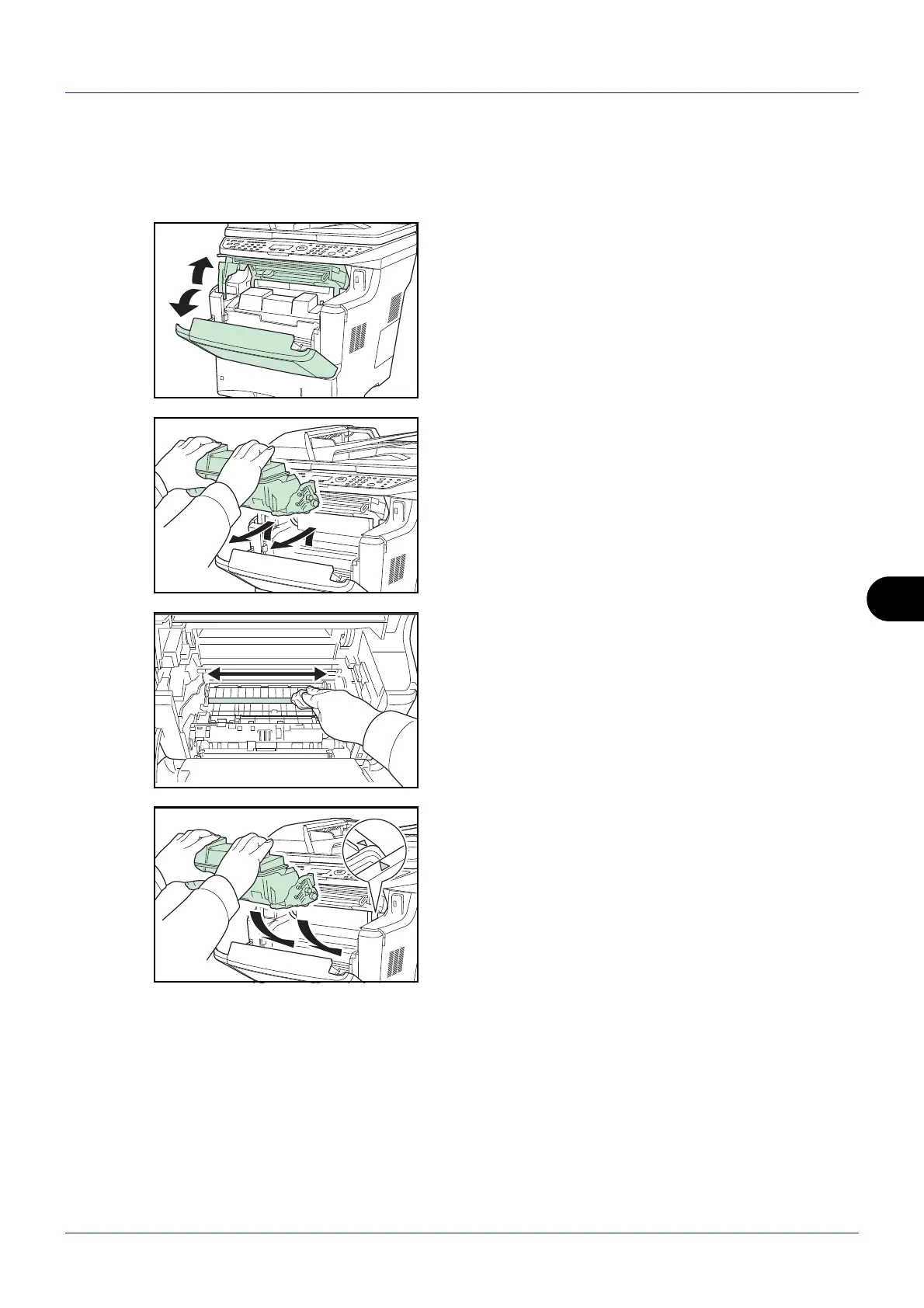 4 Zet de ontwikkelaar samen met de tonercontainer terug