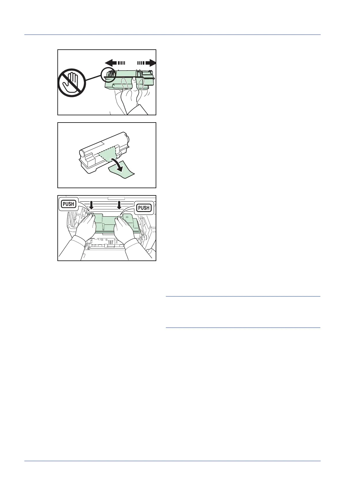 7 Plaats de nieuwe tonercontainer in het apparaat en duw