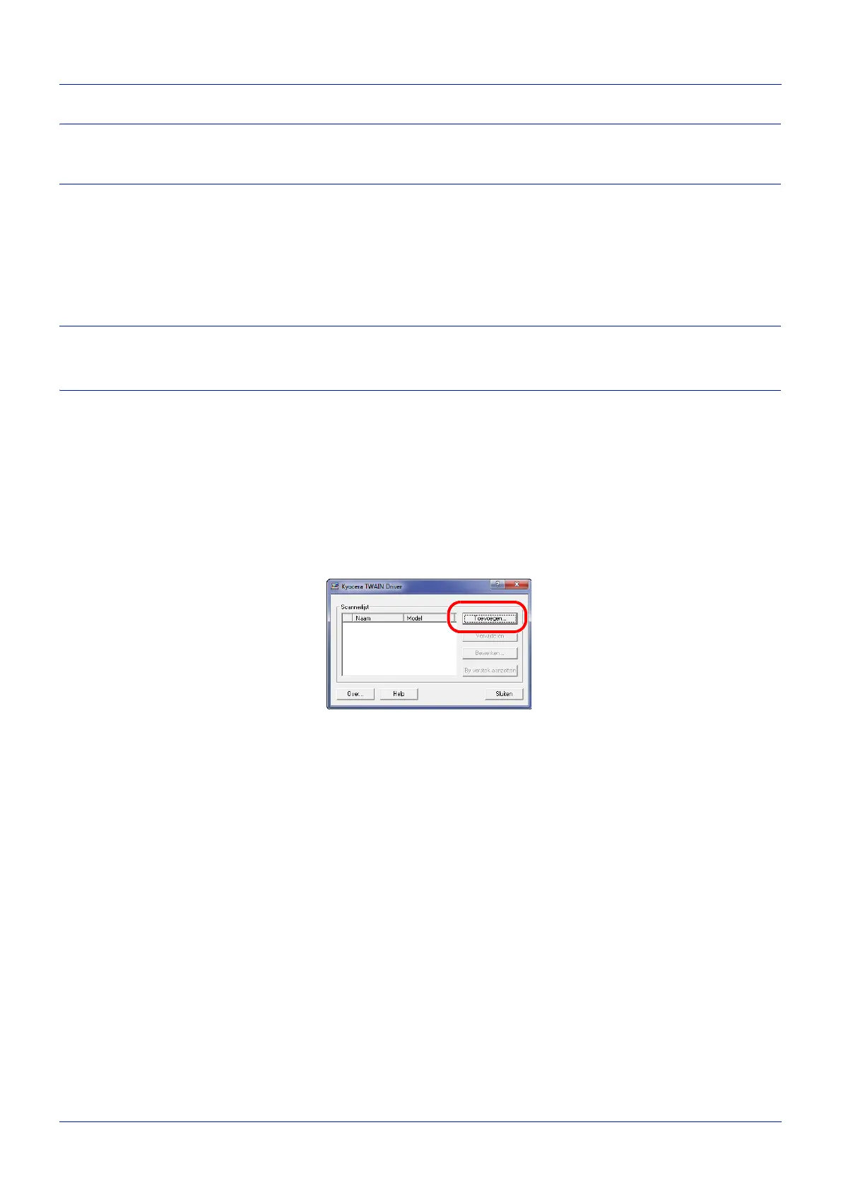 1 Start het TWAIN-stuurprogramma door te klikken op Start > Alle programma's > Kyocera > TWAIN-