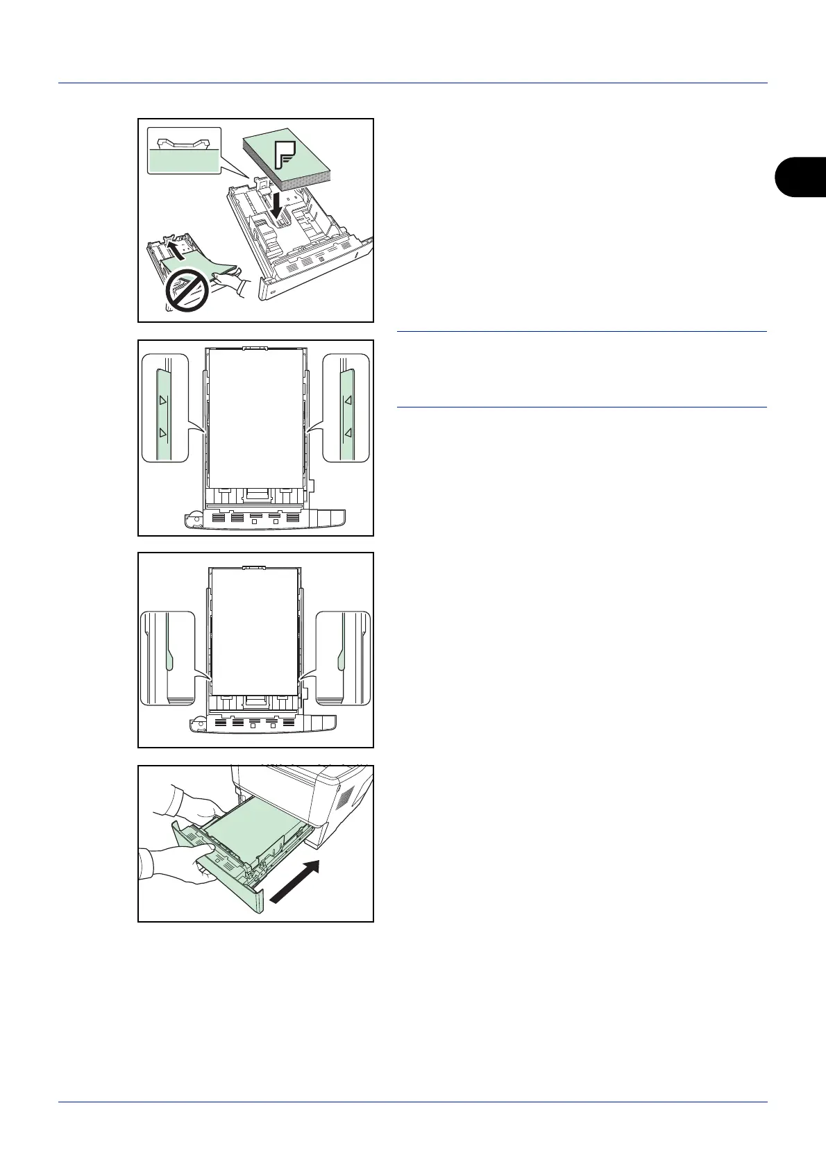 6 Plaats het papier in de papiercassette. Let erop dat de