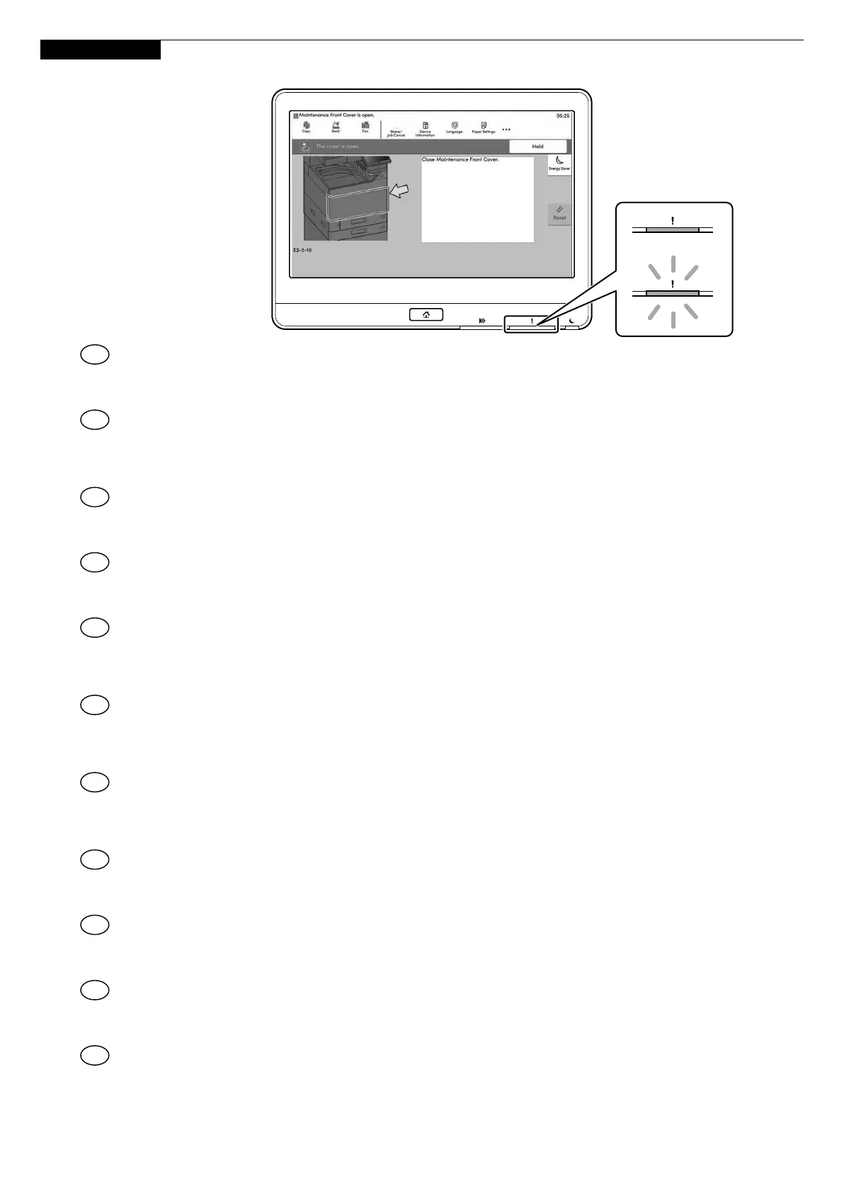 the operation panel will light up or flash. Follow the instructions on the screen to clear the error. For details,