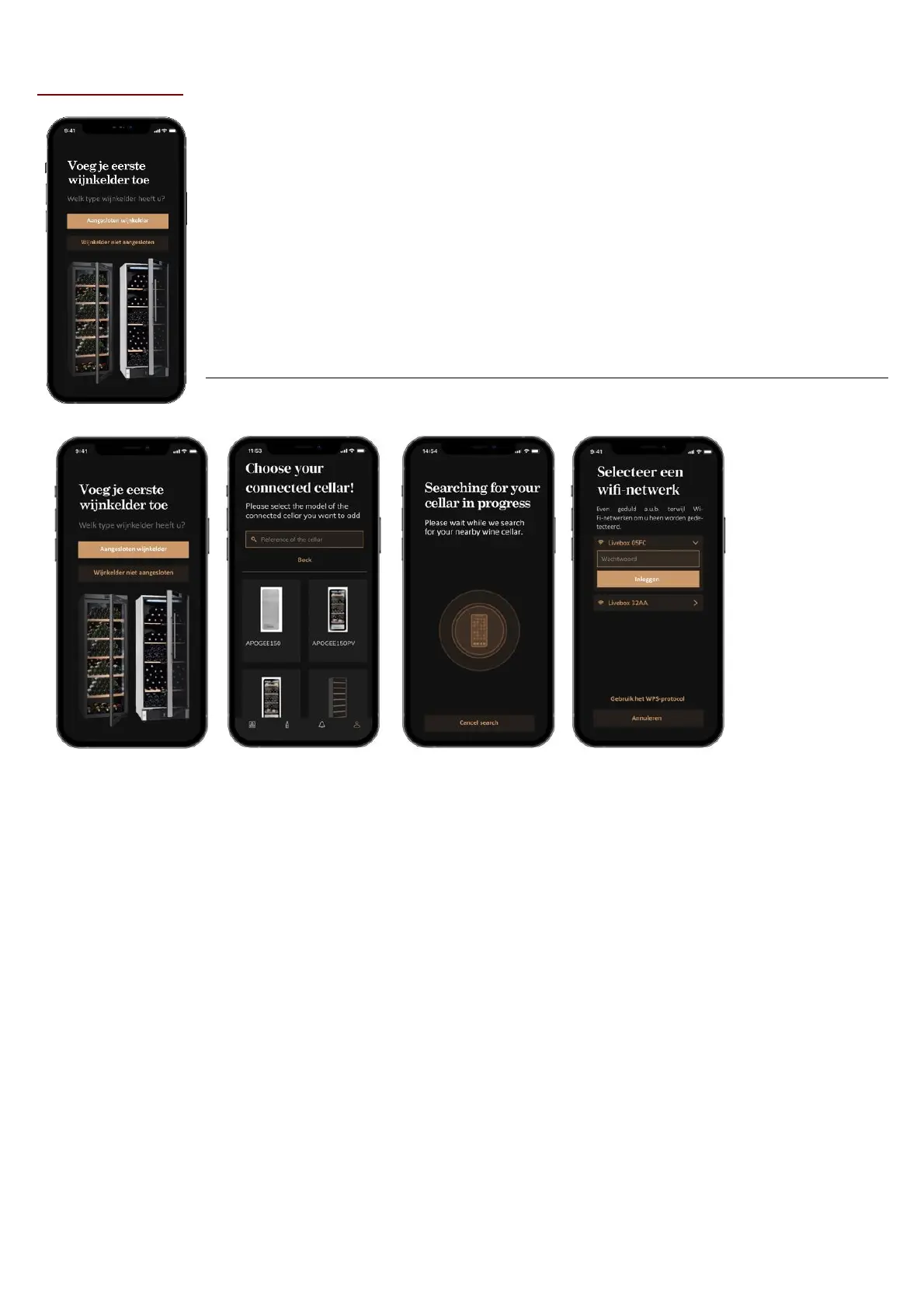 • Zodra uw kelder is verbonden met Bluetooth, vraagt de applicatie u om een wifi-netwerk te selecteren. In het geval van