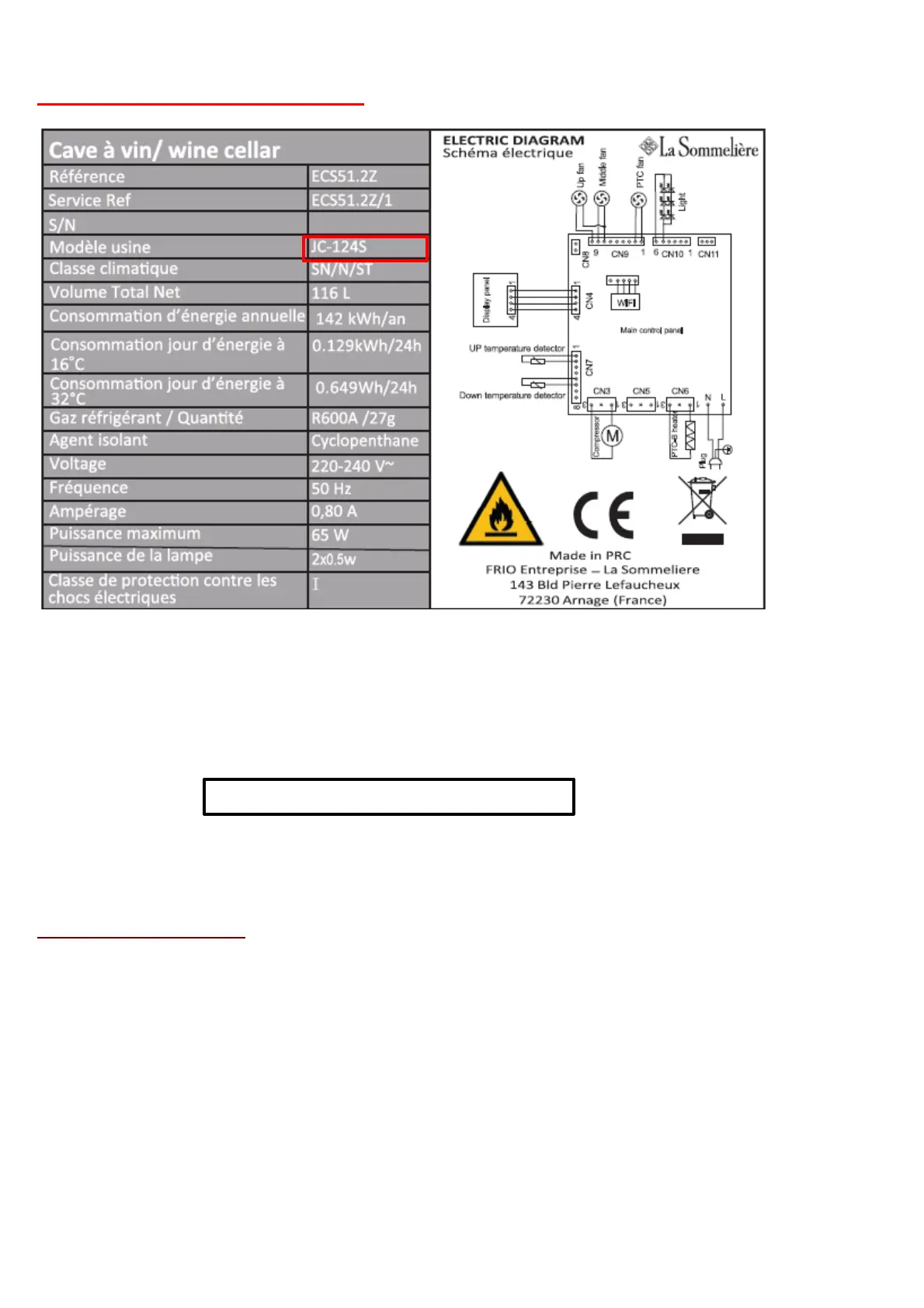 • Thermostat digital électronique : contrôle la température dans la cuve. Le compresseur fonctionnera tant que la