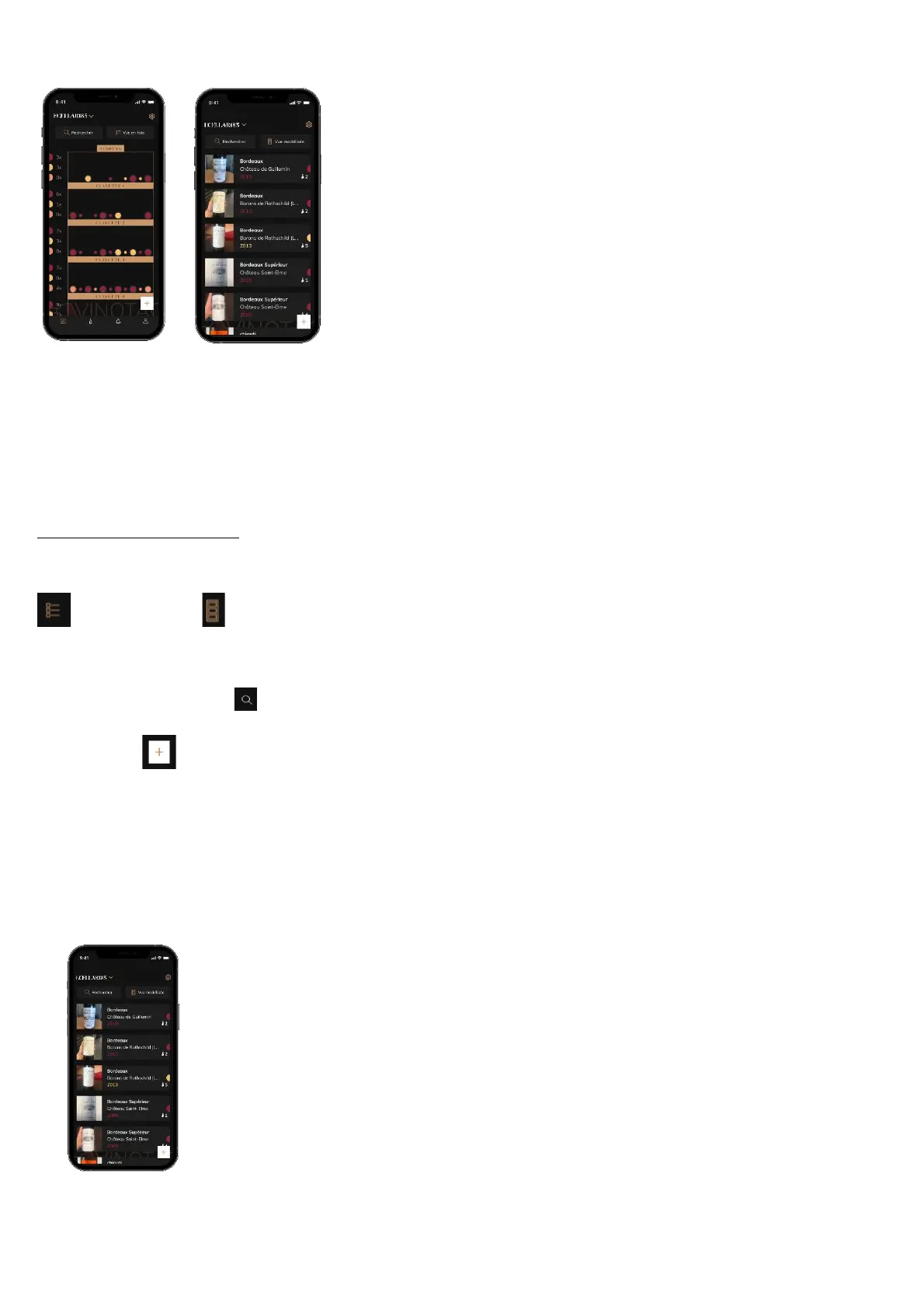 • La cave peut être visible en mode liste ou en mode modélisée. Le réglage du mode est accessible via l’icône située en