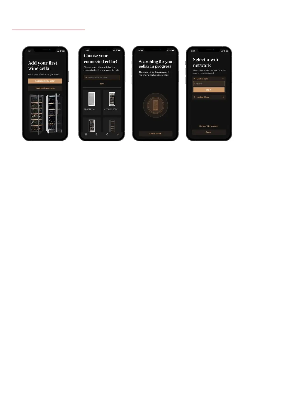• Once your cellar is connected to Bluetooth, the application asks you to select a Wifi network. In the case of a Wi-Fi