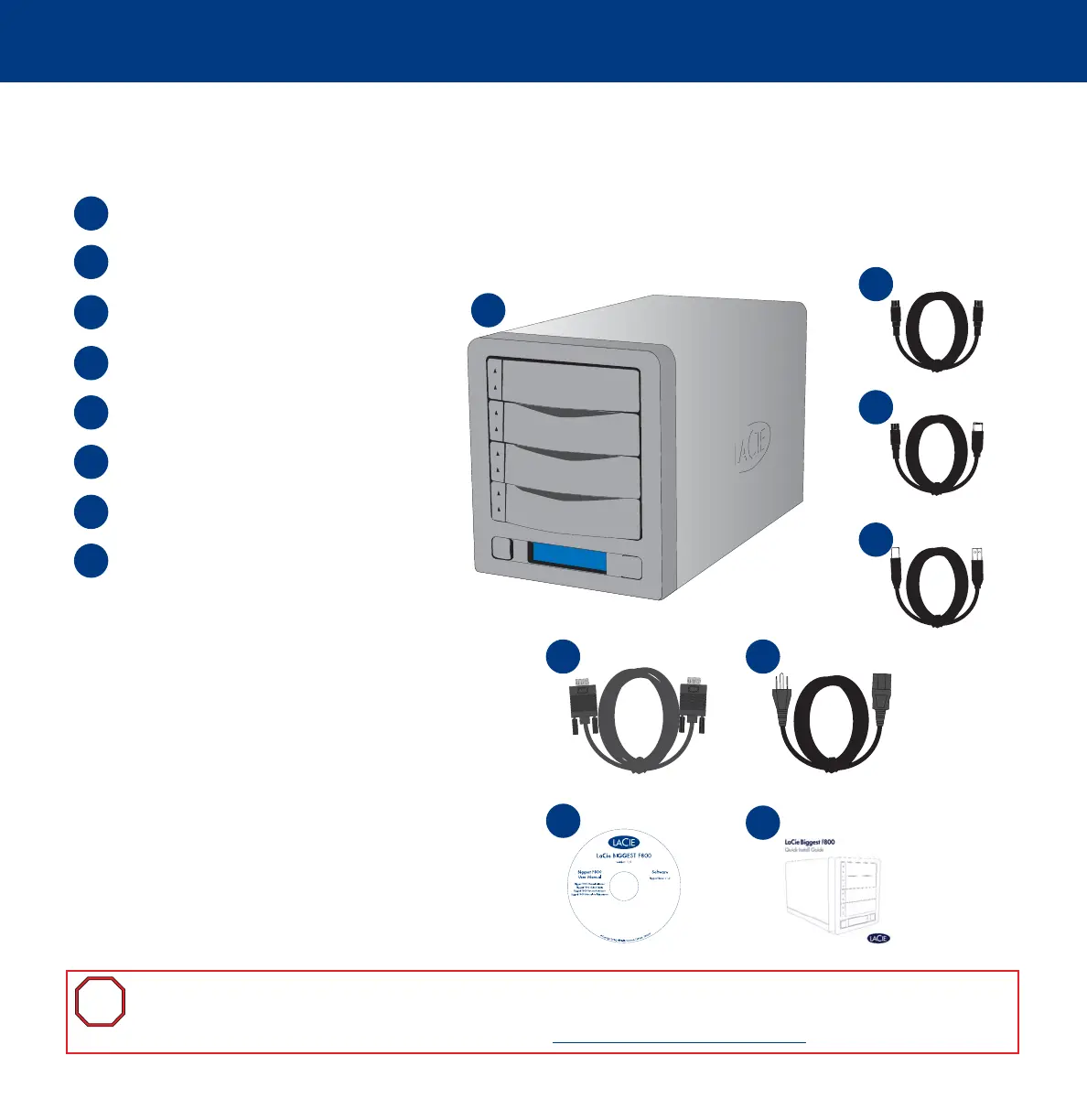 Your LaCie Biggest F800 should ship with the following: