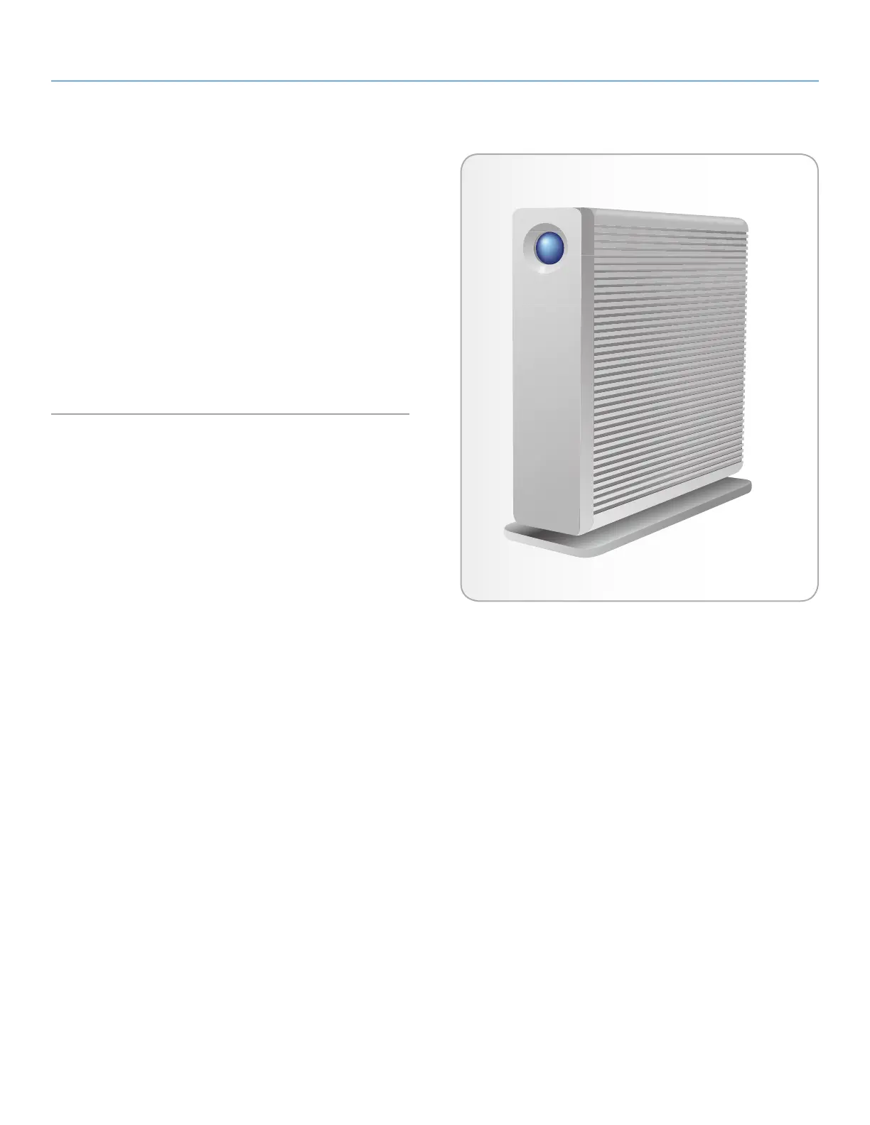 The blue button on the front of the LaCie d2 serves as a LED drive