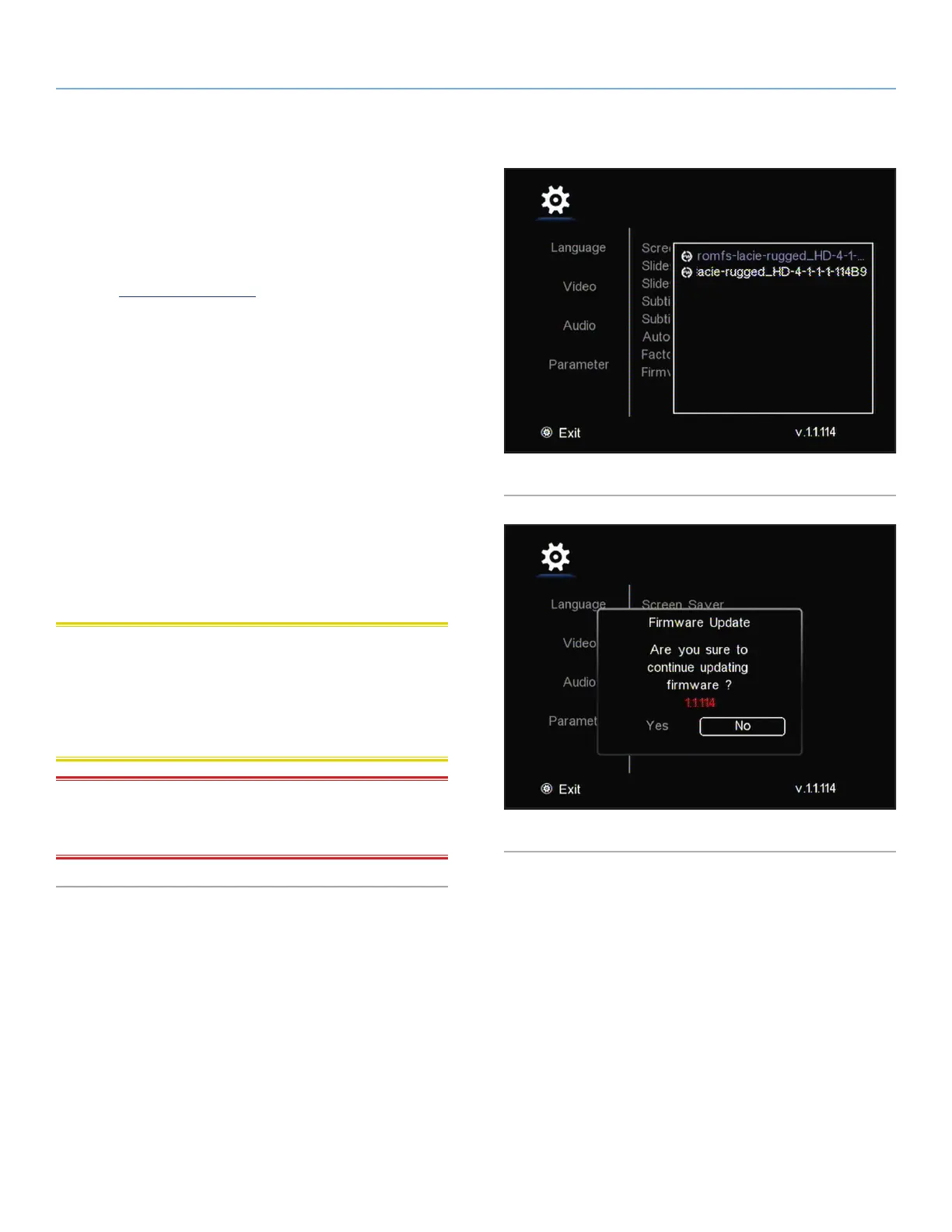 Firmware Update process! Doing so may damage your device. If,