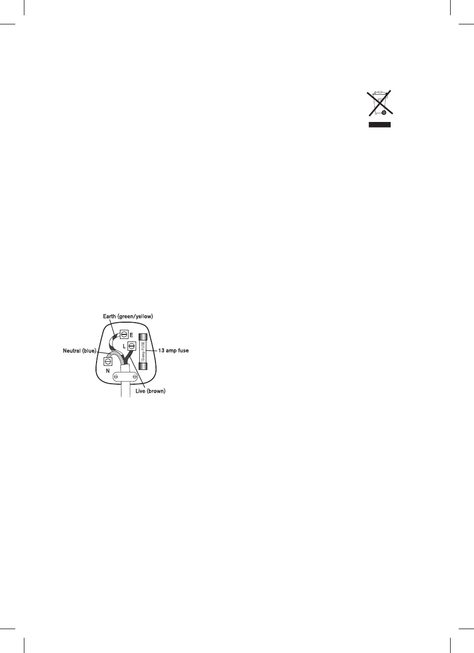 the plug. Use a 13 amp BS1362 fuse. Only BSI or ASTA approved fuses should be used. If