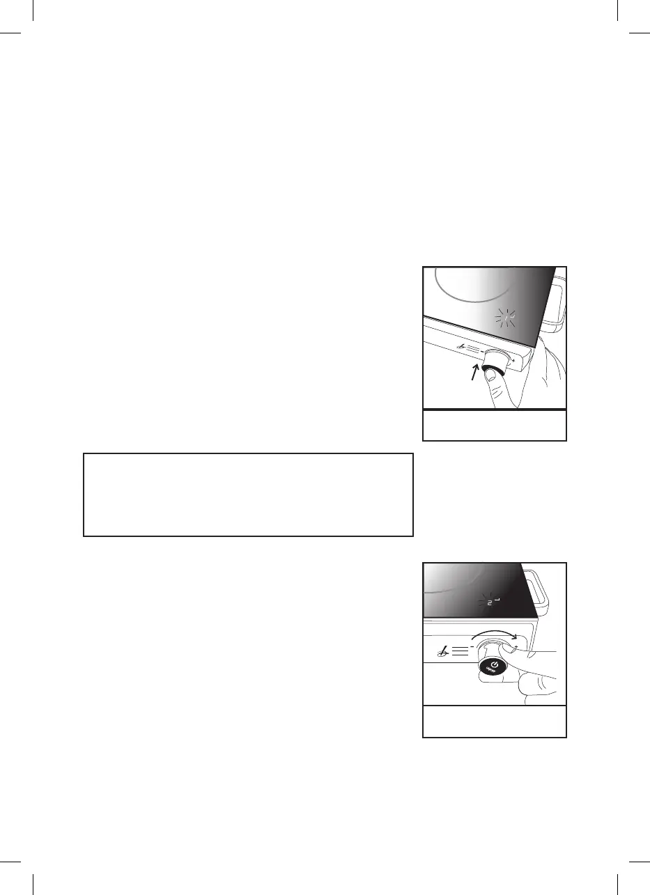 With the hob switched on, turn the dial clockwise to increase