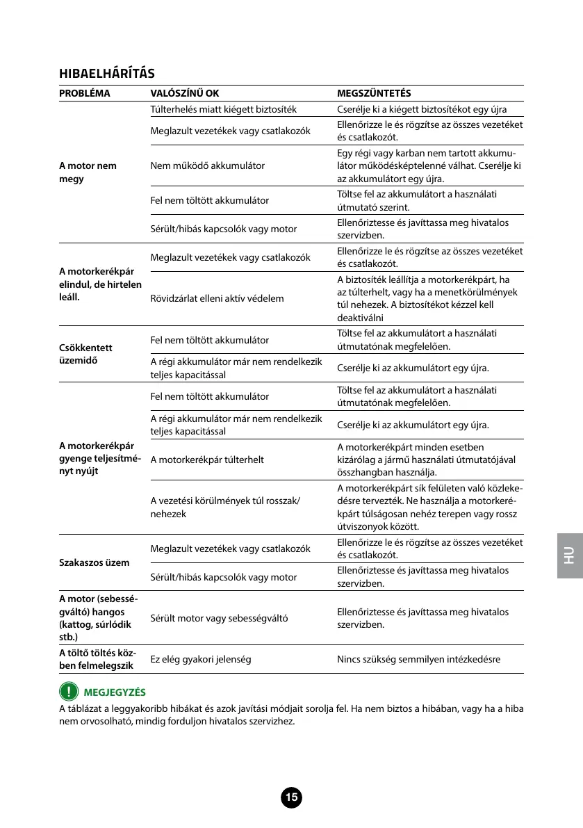 A táblázat a leggyakoribb hibákat és azok javítási módjait sorolja fel. Ha nem biztos a hibában, vagy ha a hiba