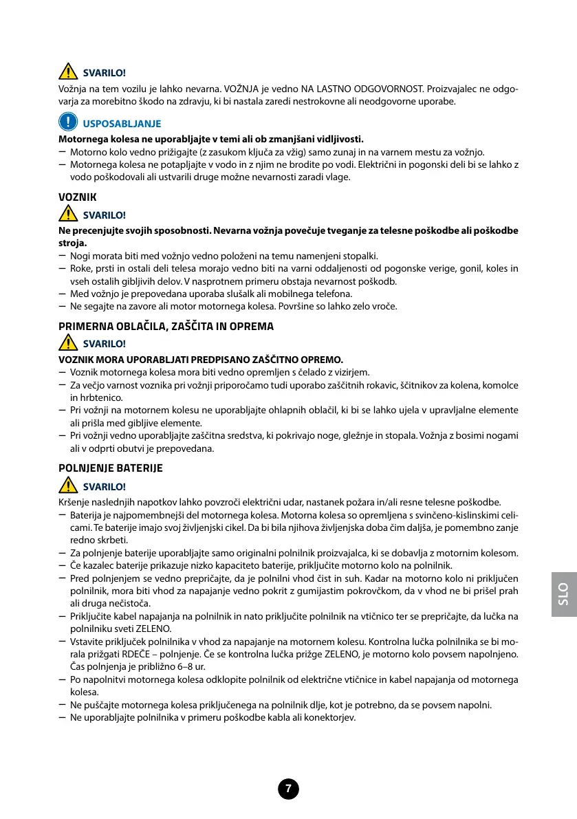Vožnja na tem vozilu je lahko nevarna. VOŽNJA je vedno NA LASTNO ODGOVORNOST. Proizvajalec ne odgo-
