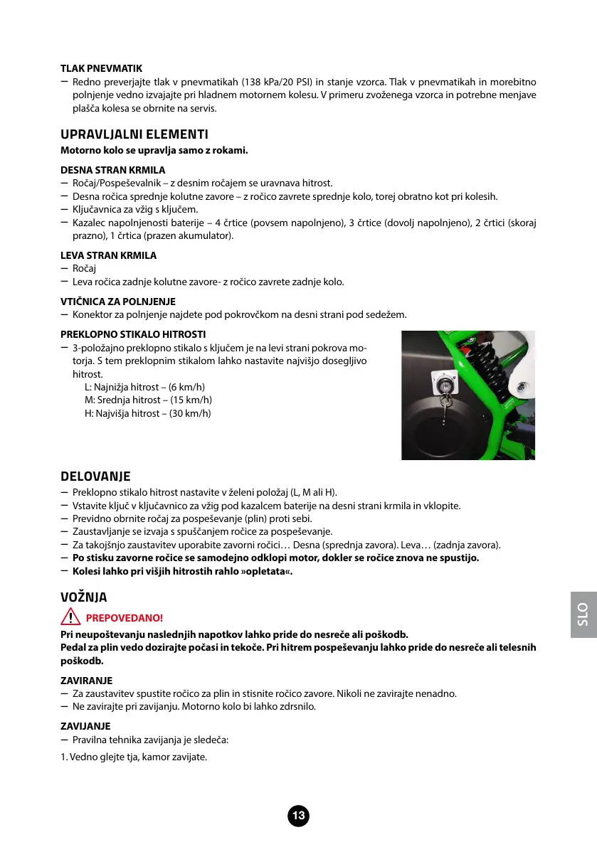 Za takojšnjo zaustavitev uporabite zavorni ročici… Desna (sprednja zavora). Leva… (zadnja zavora).