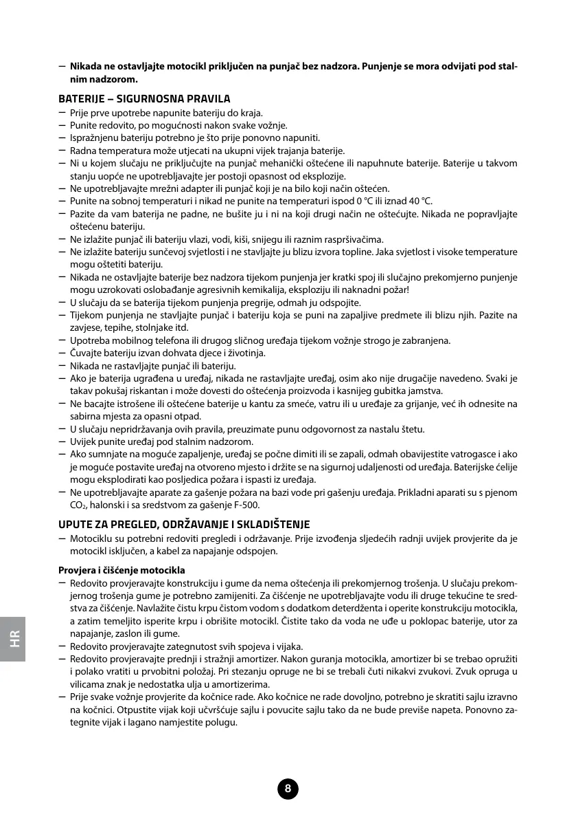 Nikada ne ostavljajte motocikl priključen na punjač bez nadzora. Punjenje se mora odvijati pod stal-