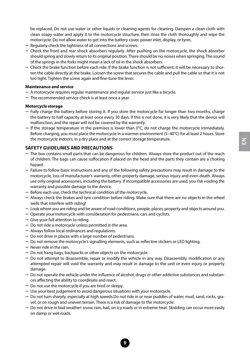 motorcycle. Do not allow water to get into the battery cover, power inlet, display, or tyres.