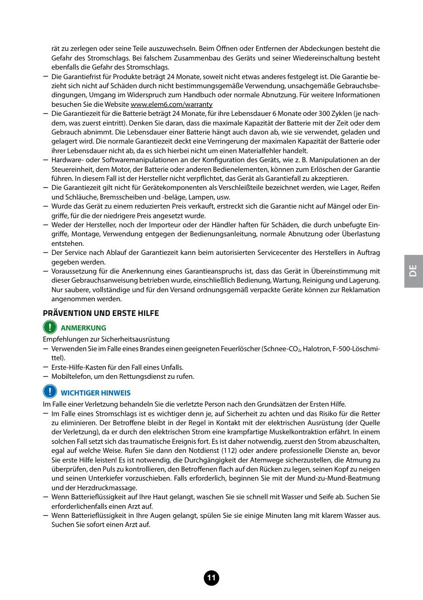 Die Garantiezeit für die Batterie beträgt 24 Monate, für ihre Lebensdauer 6 Monate oder 300 Zyklen (je nach-