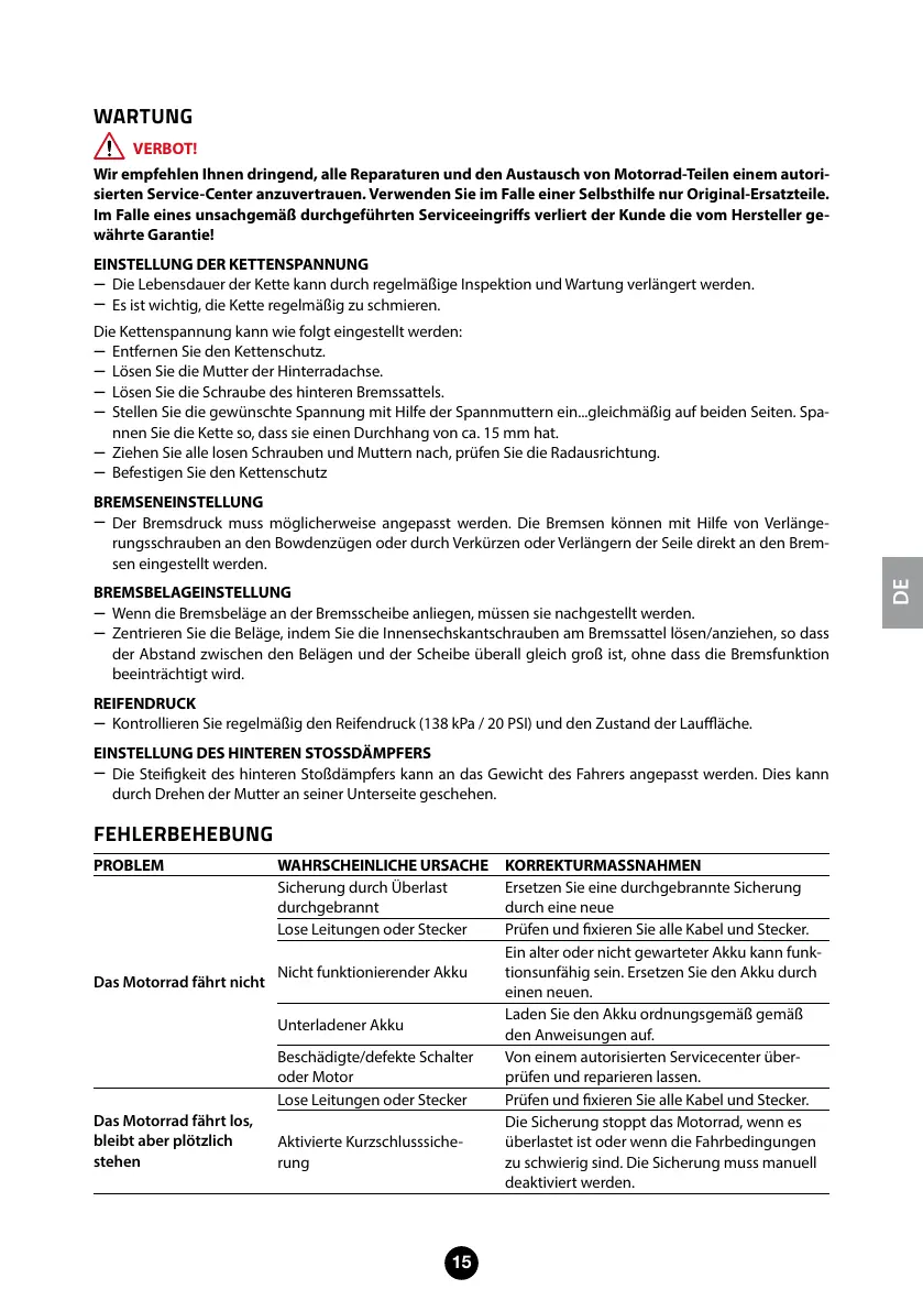 Wir empfehlen Ihnen dringend, alle Reparaturen und den Austausch von Motorrad-Teilen einem autori-