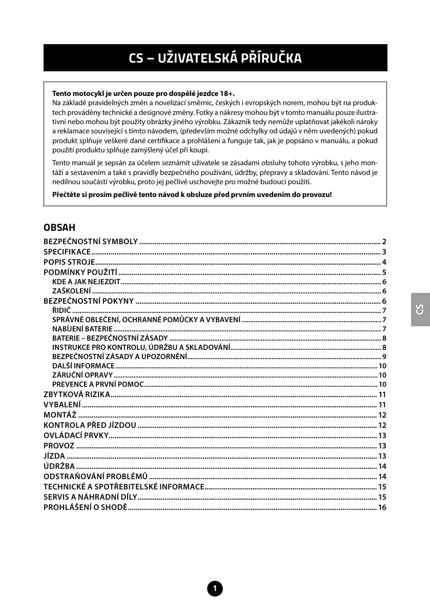 Tento motocykl je určen pouze pro dospělé jezdce 18+.