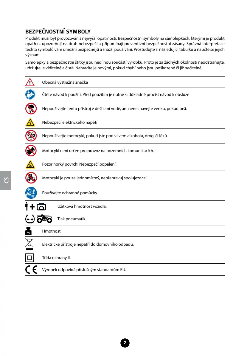 Produkt musí být provozován s nejvyšší opatrností. Bezpečnostní symboly na samolepkách, kterými je produkt