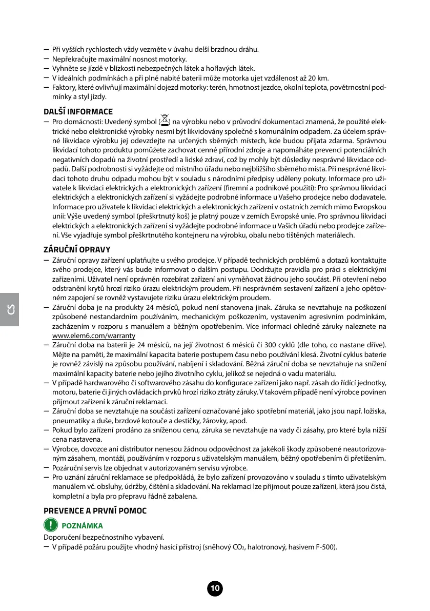 motoru, baterie či jiných ovládacích prvků hrozí riziko ztráty záruky. V takovém případě není výrobce povinen