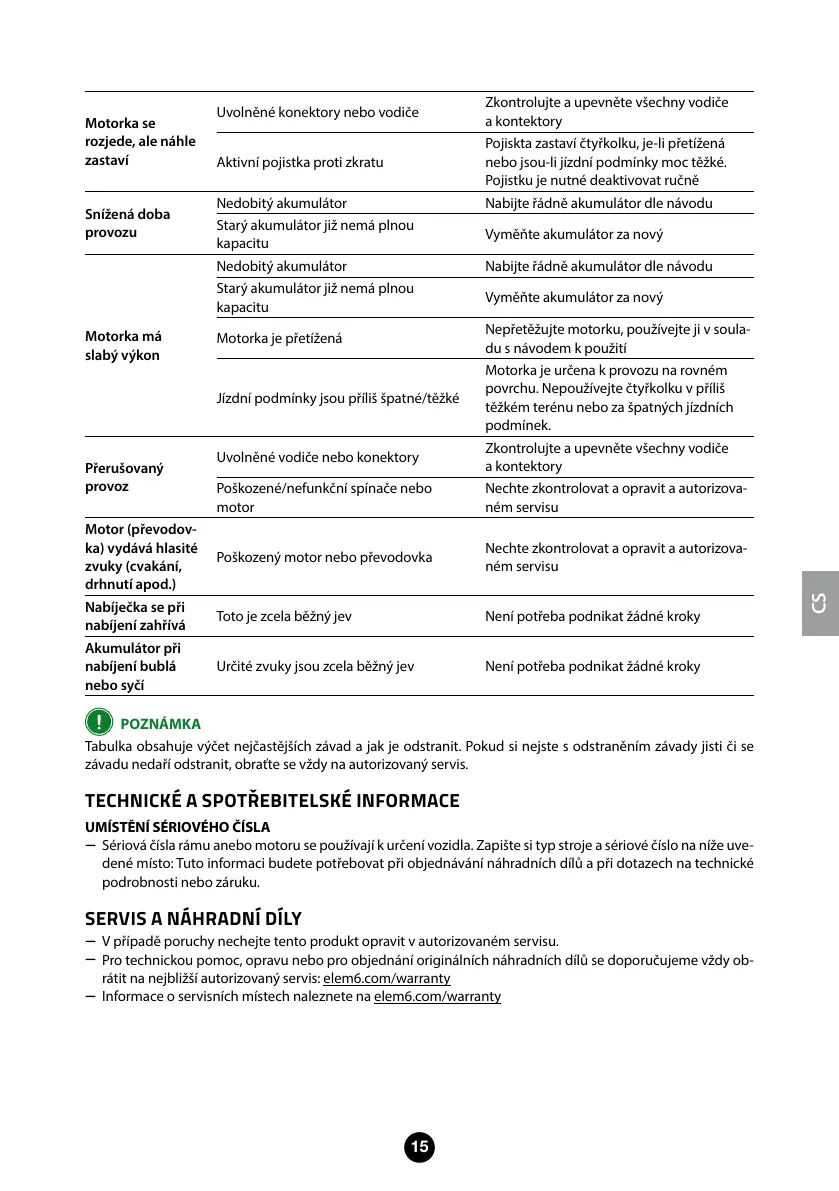rátit na nejbližší autorizovaný servis: elem6.com/warranty