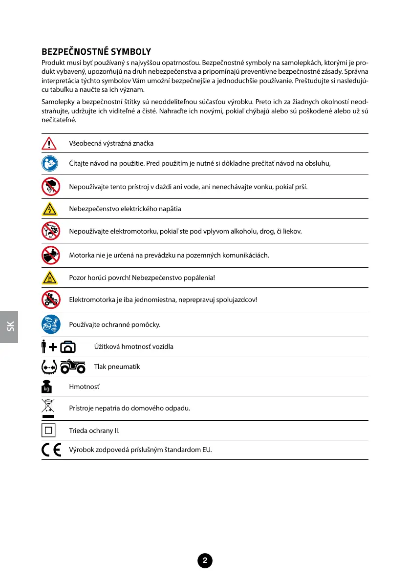 Produkt musí byť používaný s najvyššou opatrnosťou. Bezpečnostné symboly na samolepkách, ktorými je pro-