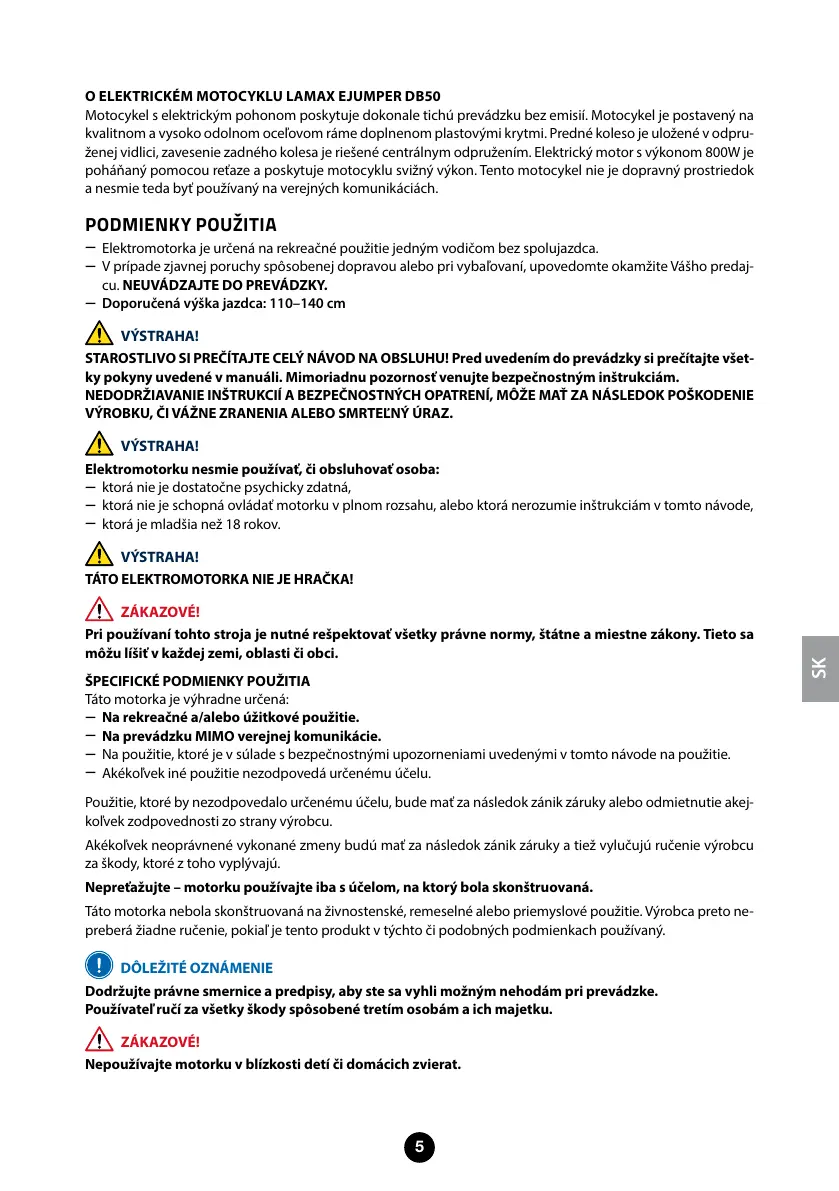 Táto motorka je výhradne určená: