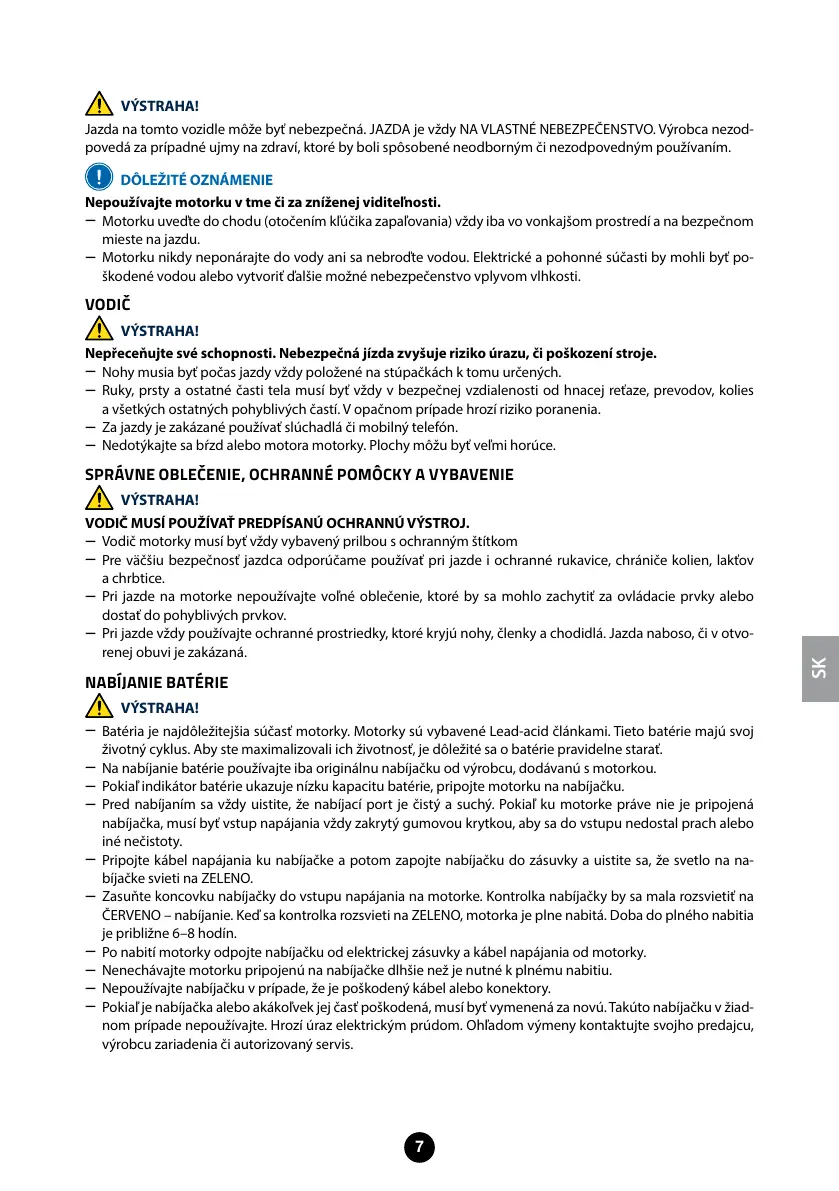 Jazda na tomto vozidle môže byť nebezpečná. JAZDA je vždy NA VLASTNÉ NEBEZPEČENSTVO. Výrobca nezod-