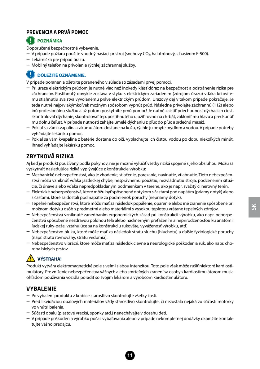 Aj keď je produkt používaný podľa pokynov, nie je možné vylúčiť všetky riziká spojené s jeho obsluhou. Môžu sa