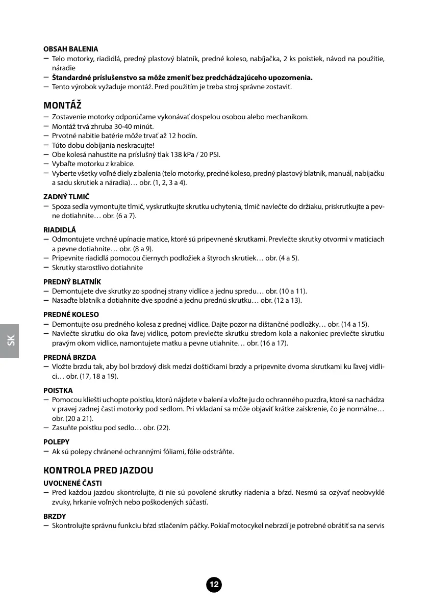 Zostavenie motorky odporúčame vykonávať dospelou osobou alebo mechanikom.