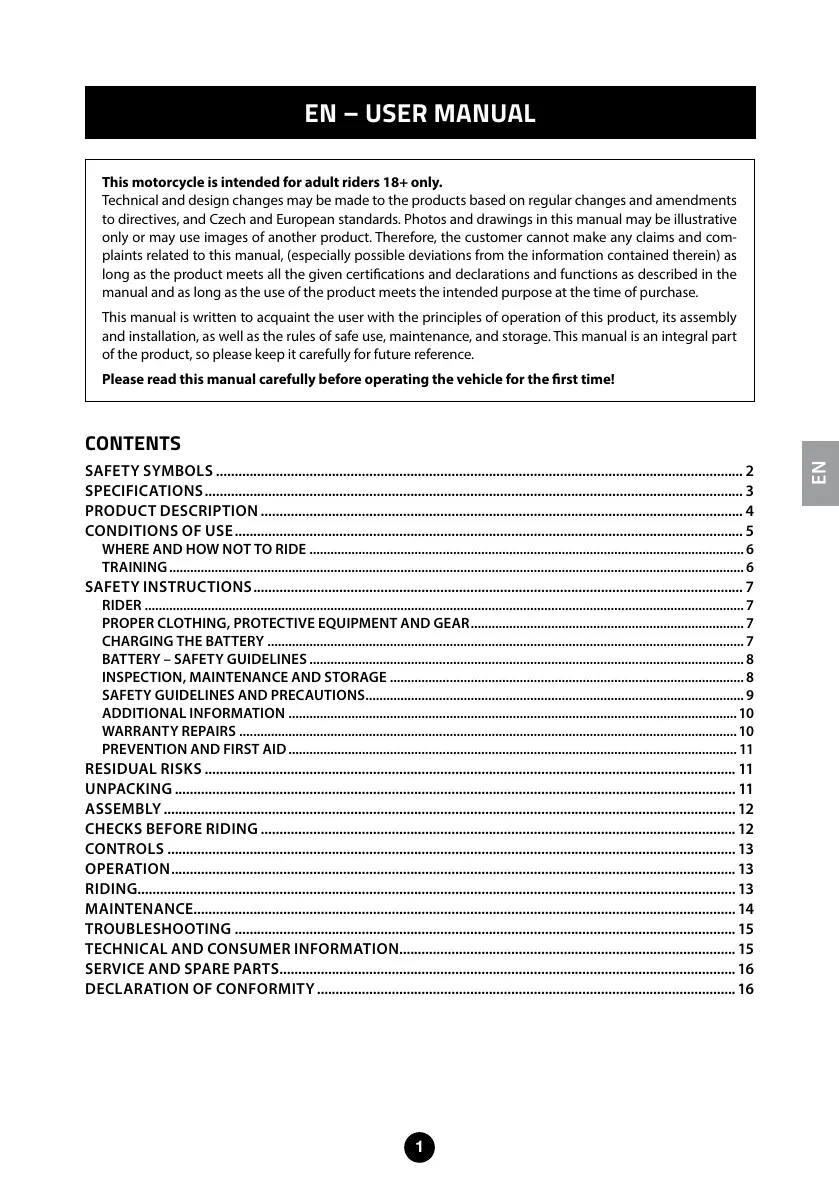 This motorcycle is intended for adult riders 18+ only.