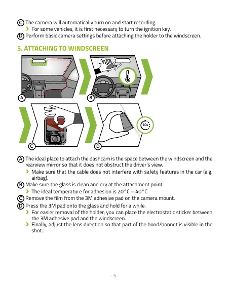 The ideal place to attach the dashcam is the space between the windscreen and the