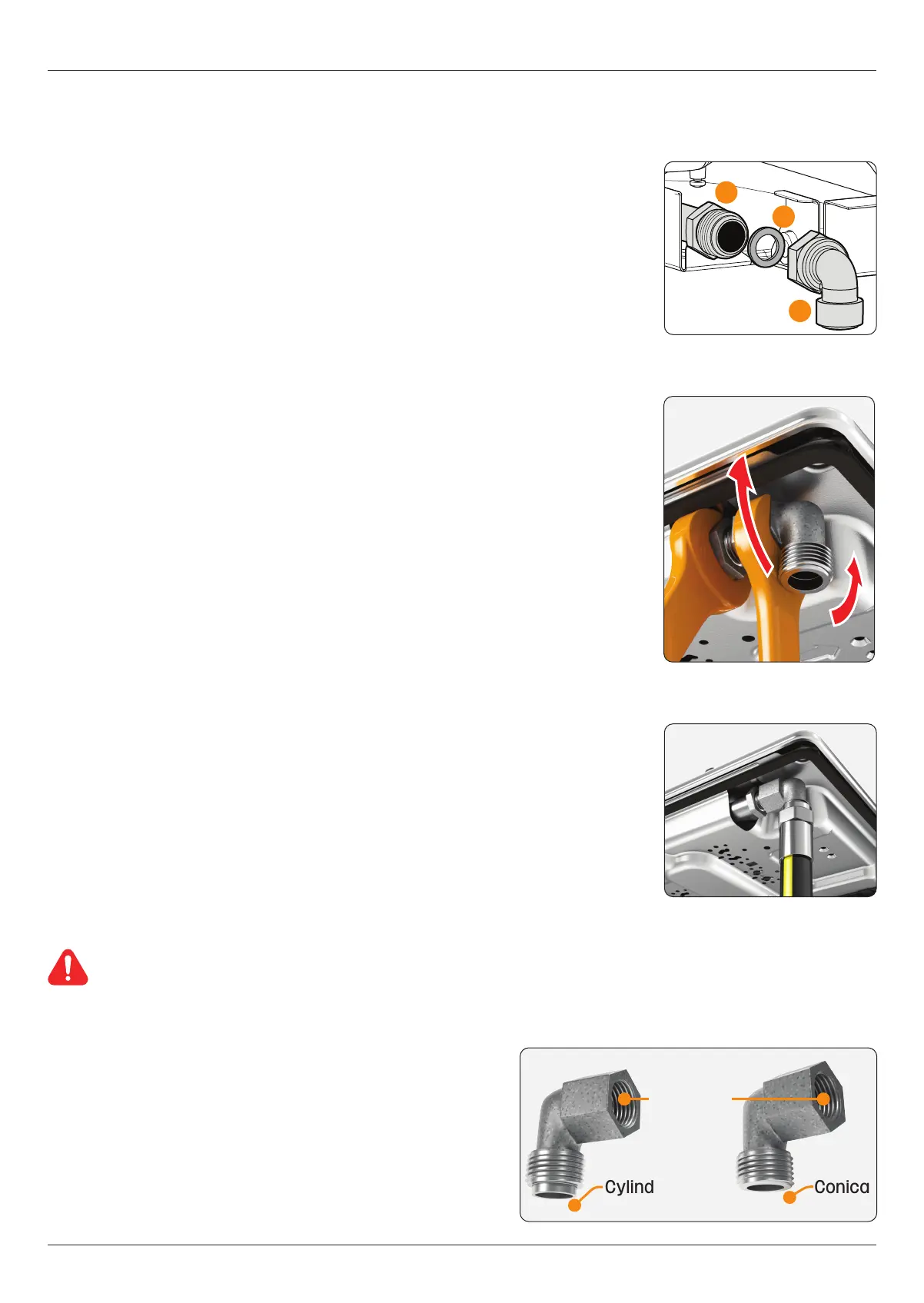 Connect fitting to the mains gas supply using either a rigid copper pipe or a