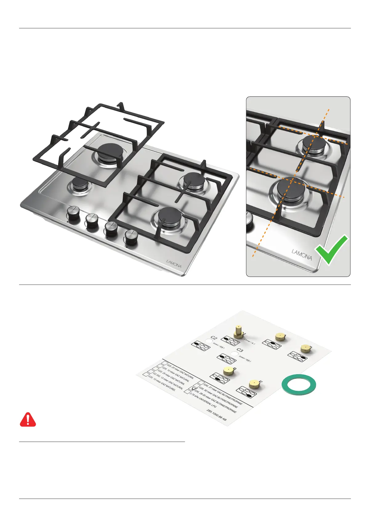• Place the pan supports on the hob ensuring they are centred correctly,