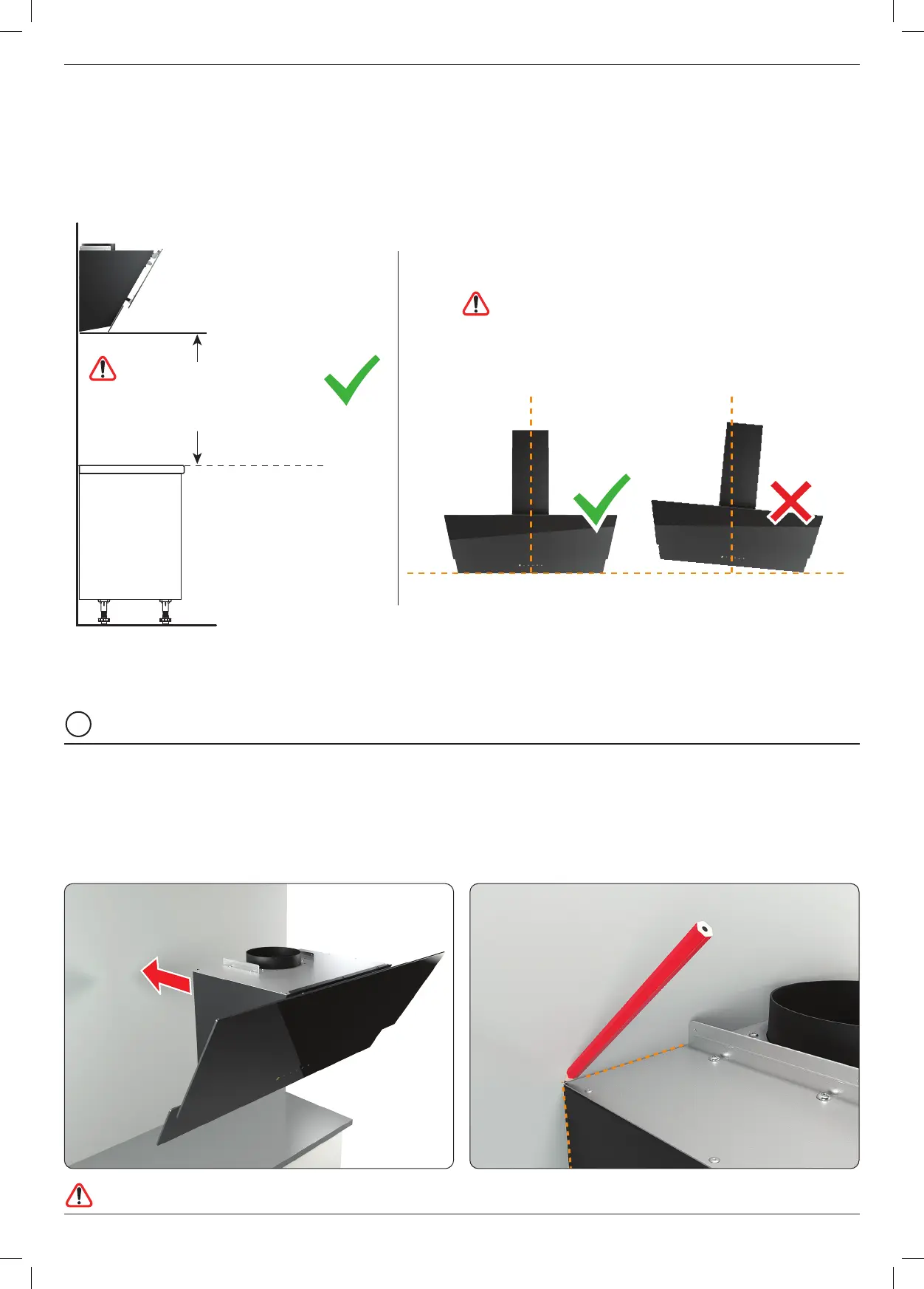 final positions of the cooker hood and flue using the dimensions shown on page 12.