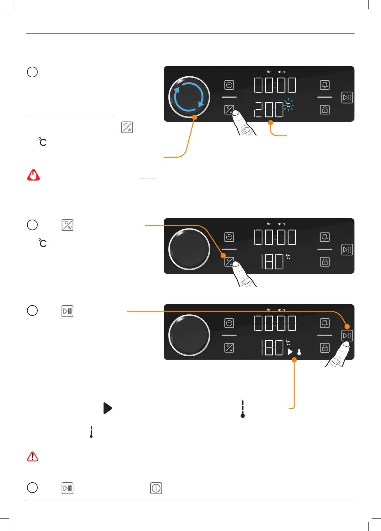 • Each stage of the symbol lights up as the oven interior temperature reaches the set temperature.