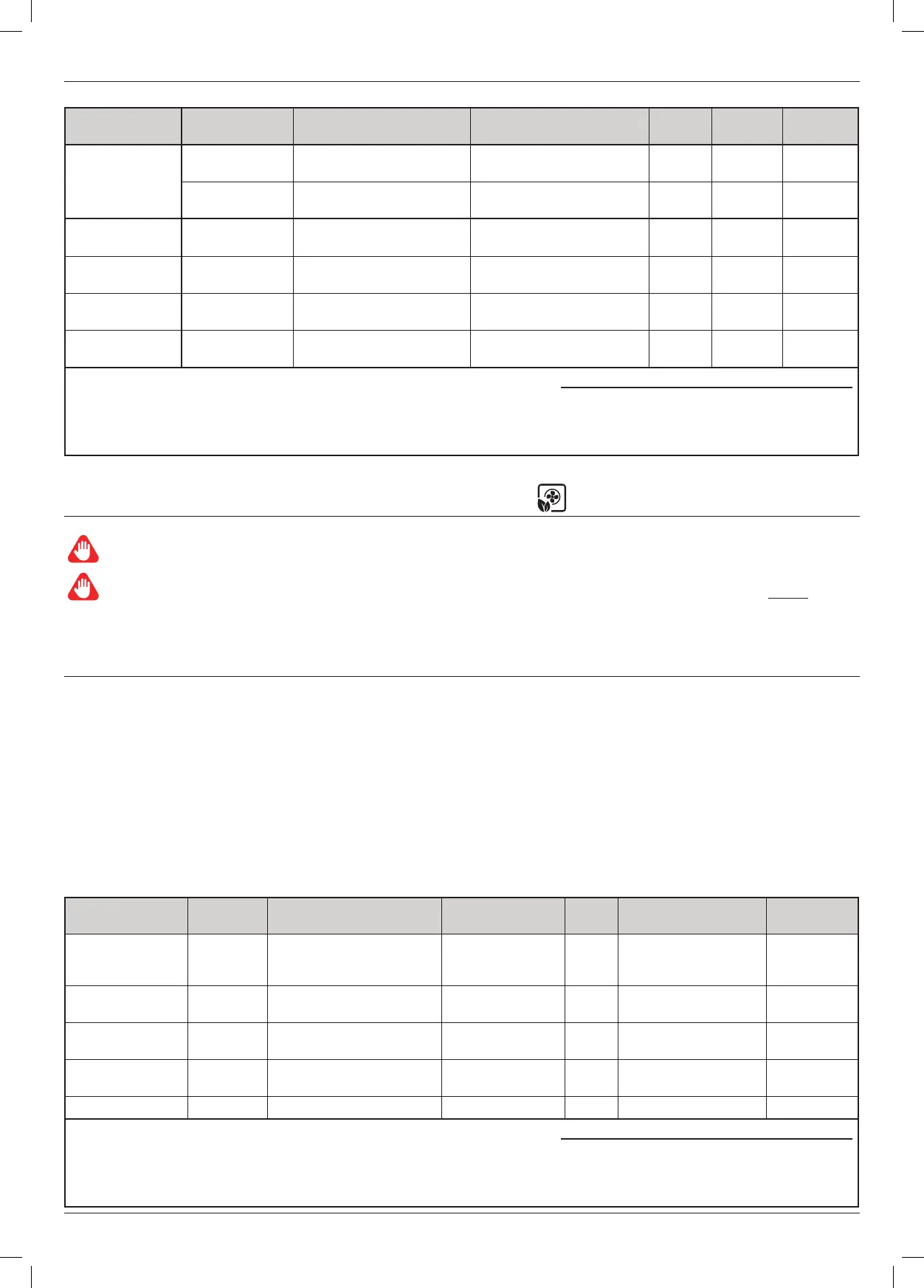 *** Test Foods: Foods in this cooking table are prepared according to EN 60350-1 standard to facilitate testing.