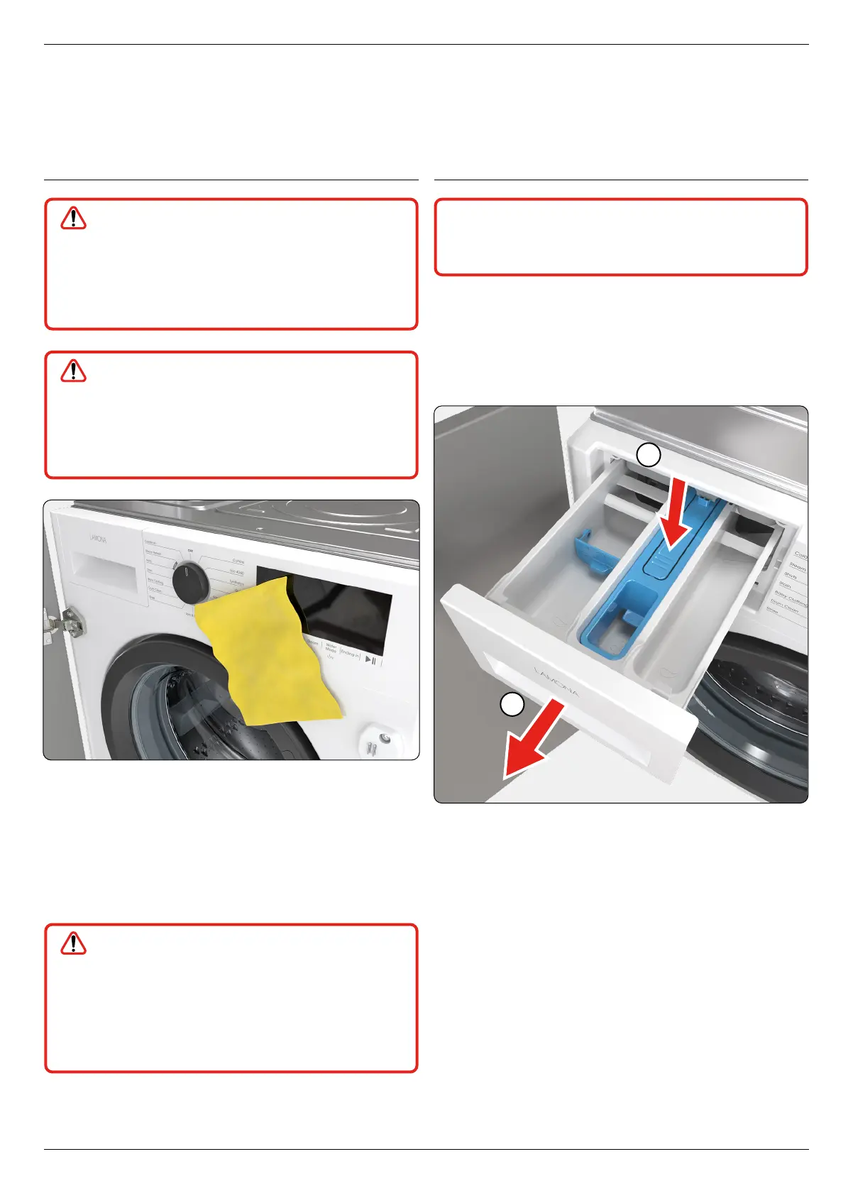 • Clean the detergent dispenser drawer as detailed