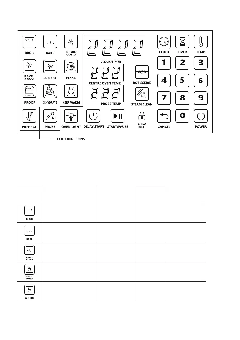 Cooking Functions Reference for LB-ERT36RC-S and LB-ERT36RC-B