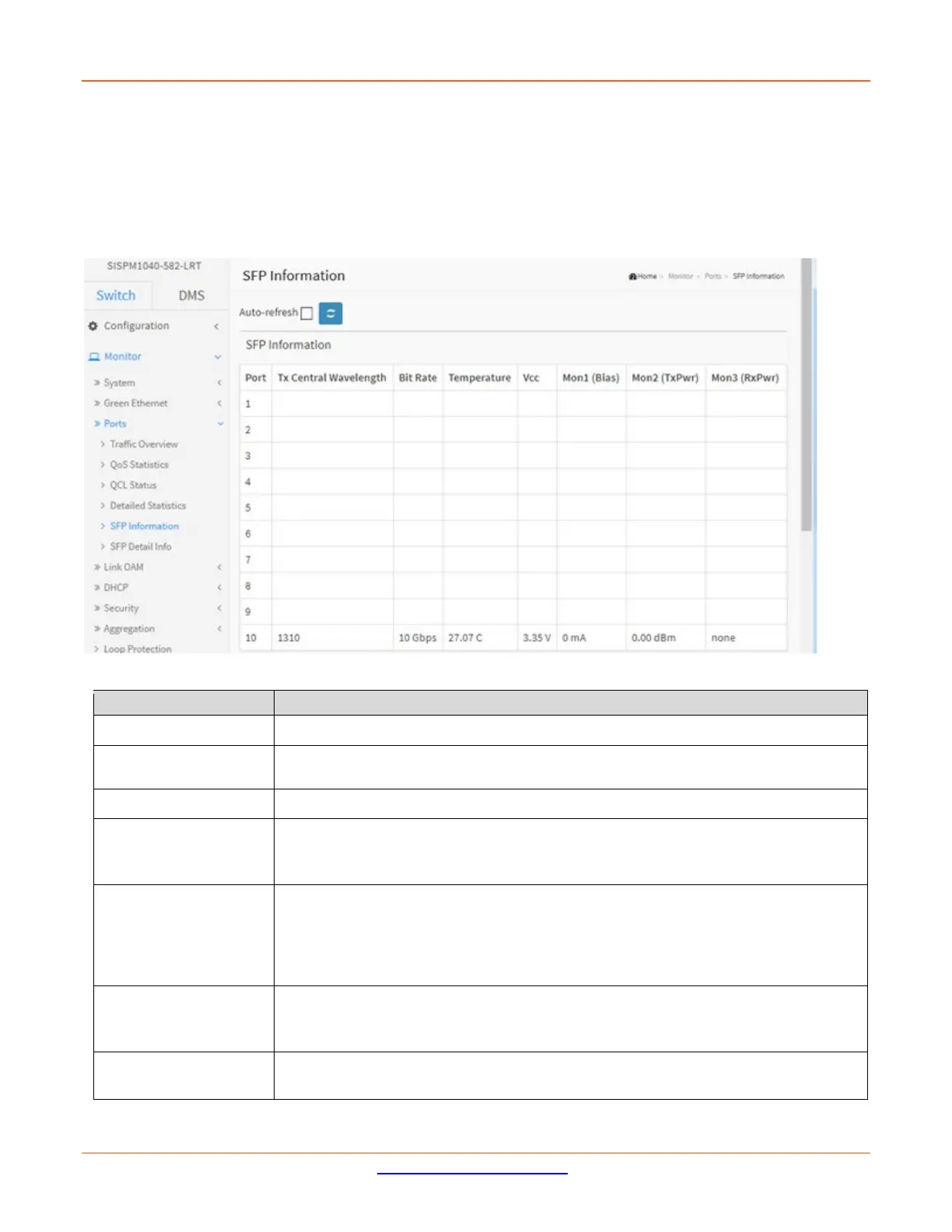 Displays the measured TX bias current in uA. Accuracy is vendor specific but must