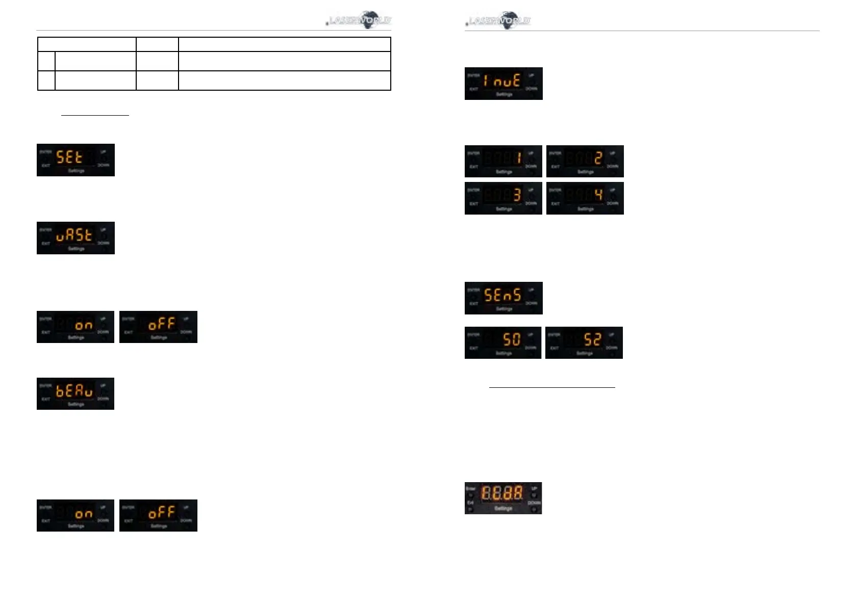 Über das „bEAu“ Menü kann das Beam Block Safety ein- und ausgeschaltet werden.