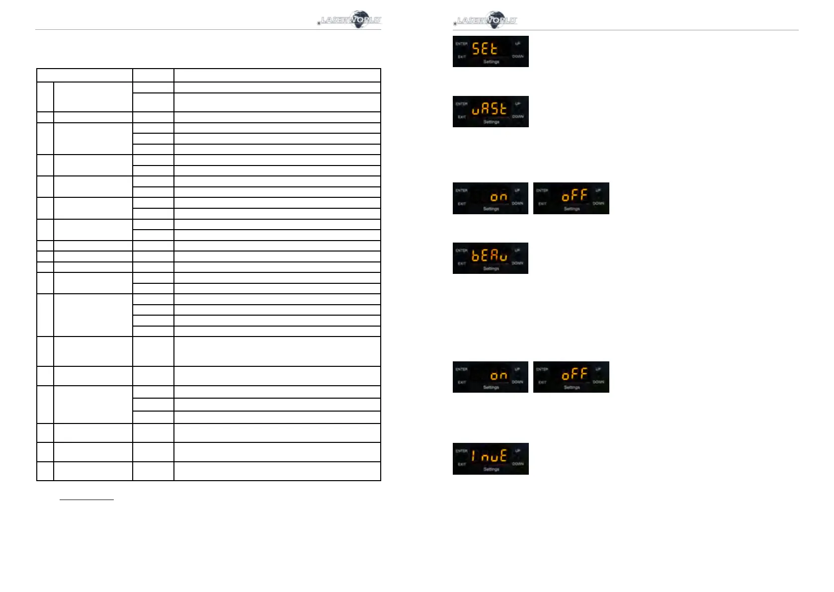 Le menu „bEAu“ permet d‘activer et de désactiver la sécurité de balayage. La sécurité „beam