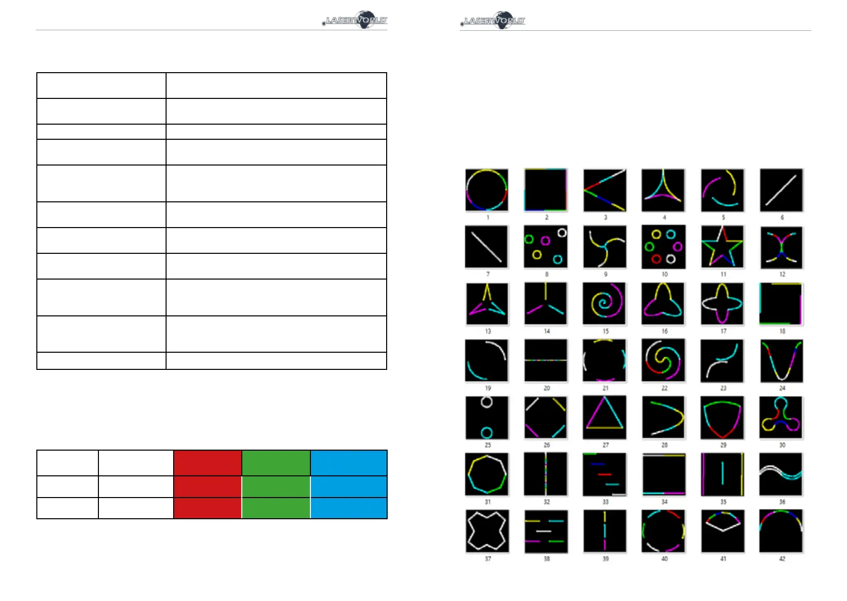 The following patterns are pre-set in the laser. Some may be pre-animated, others are static