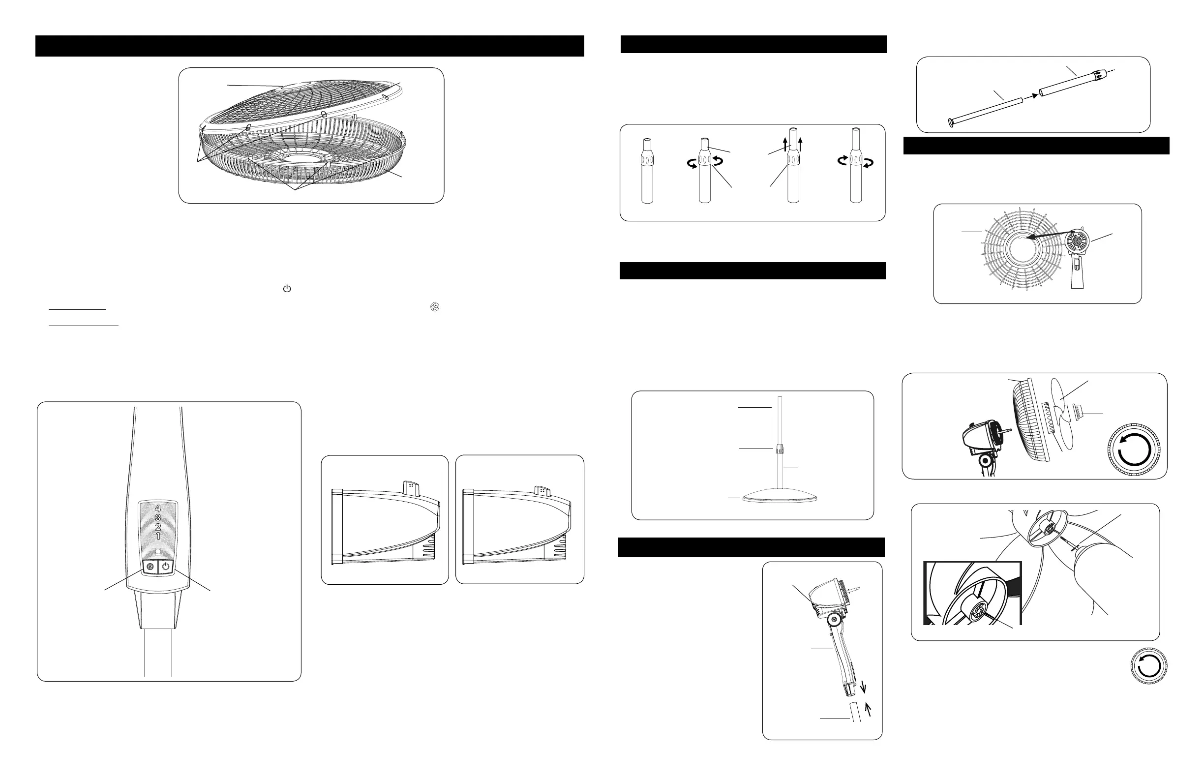 4. OSCILLATION: Push down oscillation knob on motor housing to make fan head move from side to side.