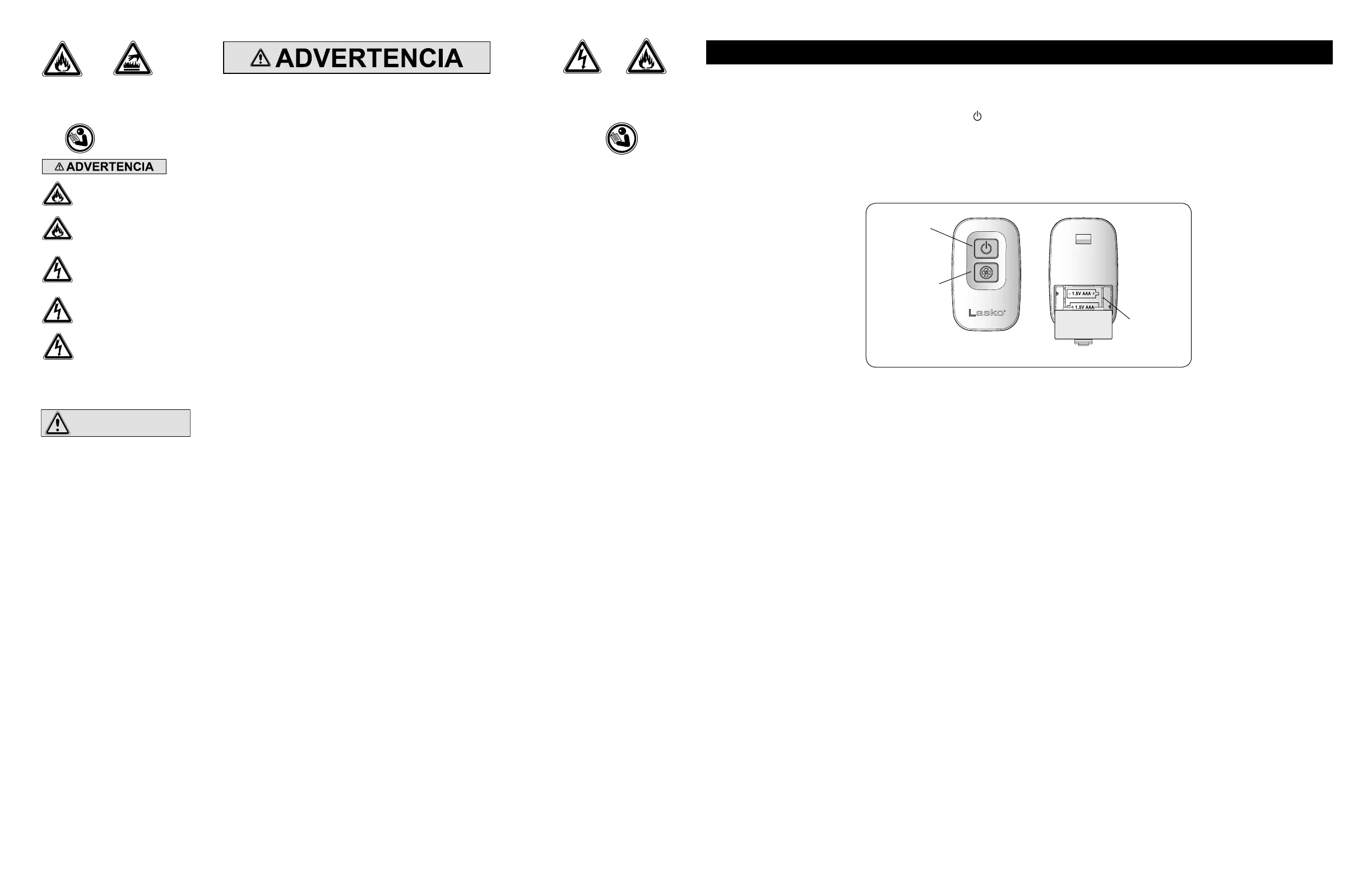 •NO bloquee, cubra ni obstruya el flujo de aire hacia o desde el ventilador mientras esté en funcionamiento.