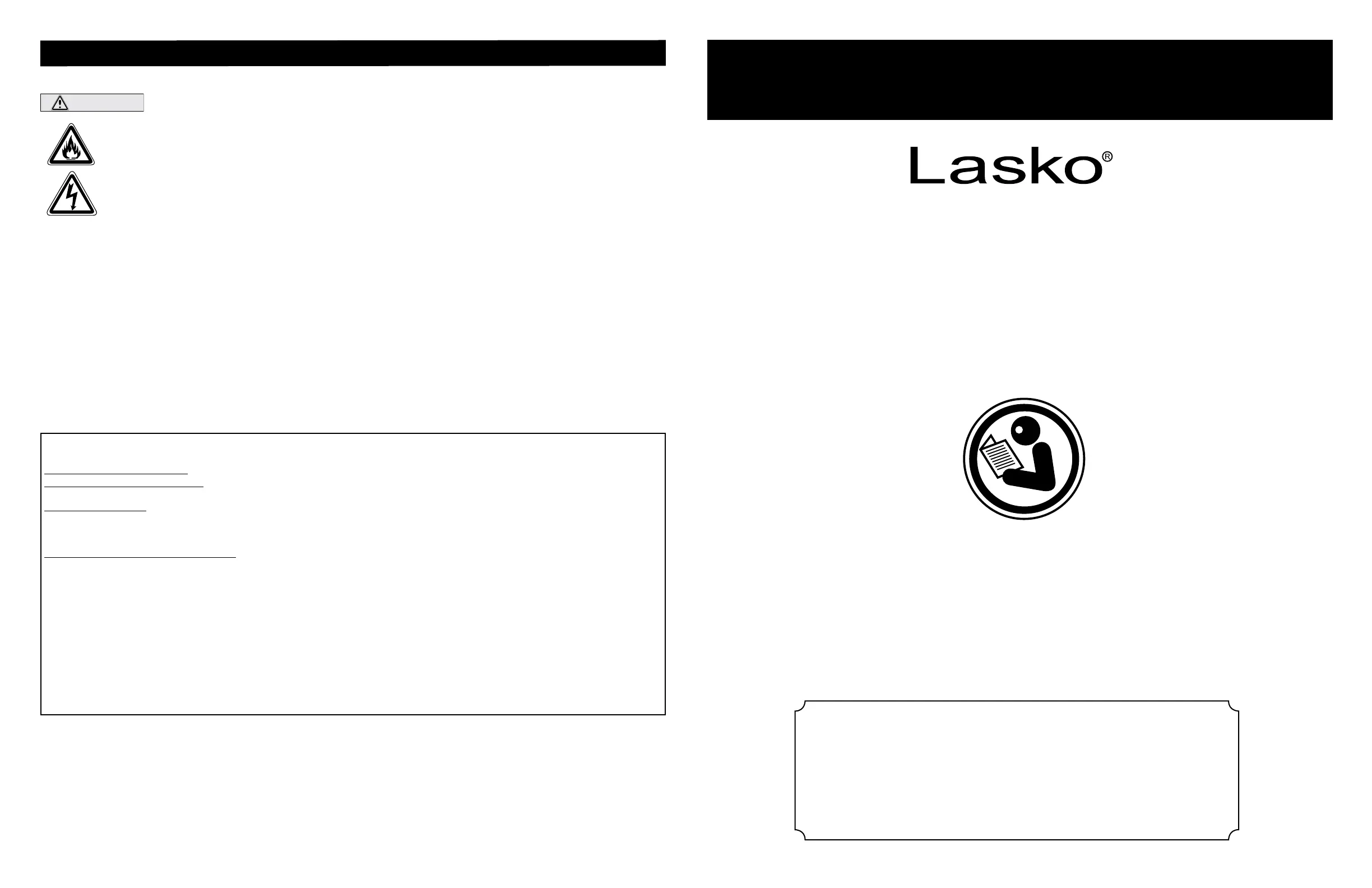 customer expense with proof of purchase within the warranty period. Contact the Lasko customer service department to obtain a Return Authorization